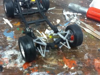 Hello again, been a while since I updated this but I've gotten a lot done since then. Interior is done Rear Chassis is done and wheels are mounted Here's the knockoff on the wheels Headlight covers, air ducts and glass are installed. The front suspension is done and wheels are mounted, along with the engine. Pretty soon everything will be together, hopefully I'll have this one done soon. Thanks for looking, advice, questions and comments welcome -Glenn