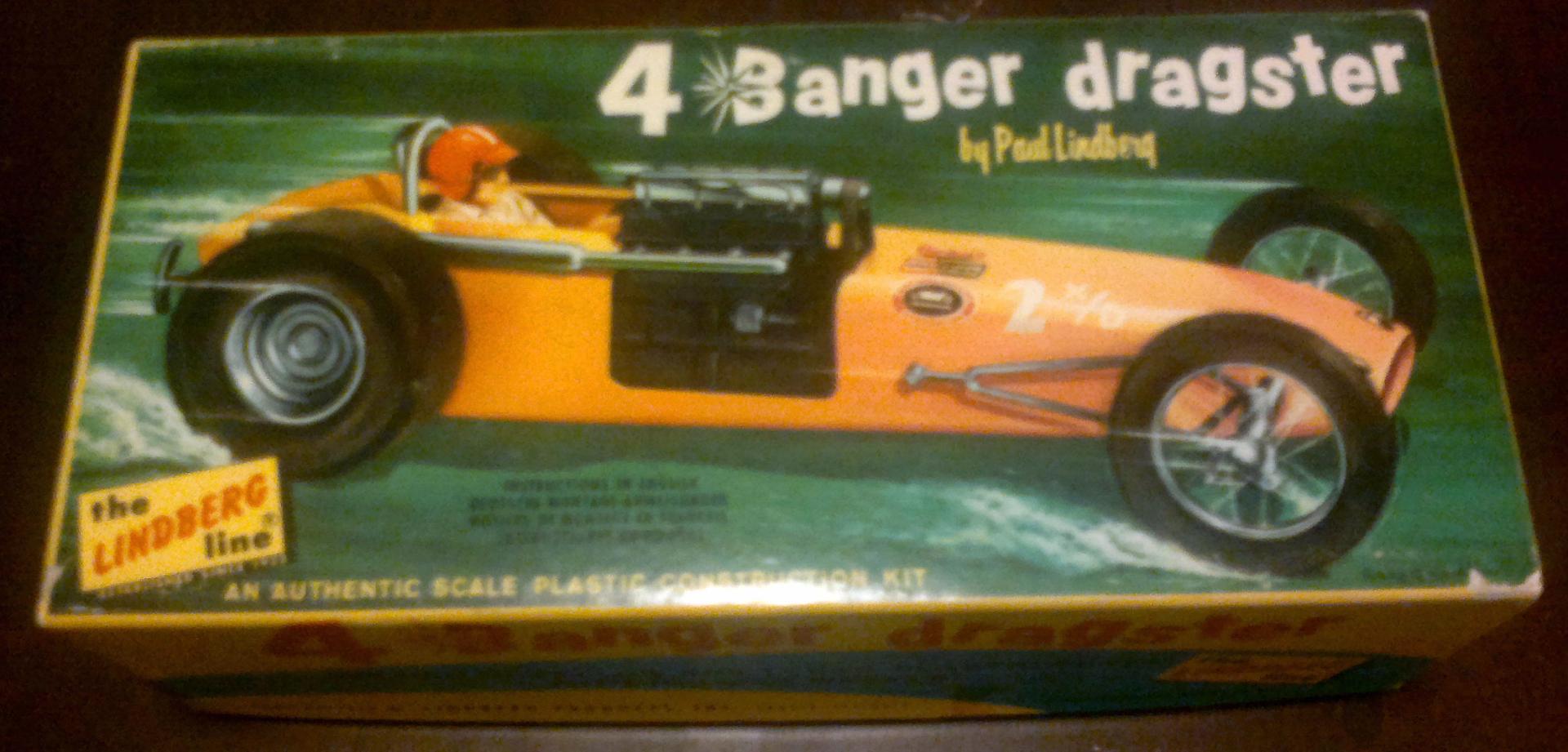 Lindberg 4 Banger dragster. Just saw the real one a couple of weeks ago at the NHRA museum (it's red). -