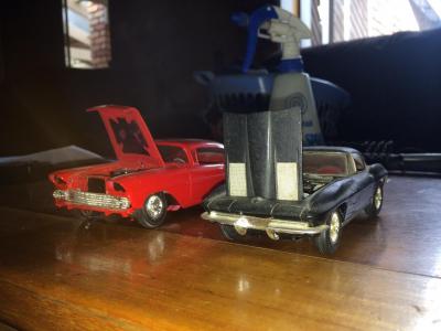Here are a couple of models I found that my dad built when he was younger.. He is nearly 50 and I look at these models and realise they're probably atleast 30-45 years old.. For the age they are the detail isn't too bad.. The paint on the corvette is ratty and aged beautifully.. And the impala has been sitting unfinished since he lost time to build it as a teenager.. I remember seeing these cars when I was about 5 years old and I am now 18.. My dad is the reason I have such a big love of cars and these two models are the reason I loved model cars as a child.. If you can't own your dream car in real form then why not build one? I mean.. Dreams are cheap!