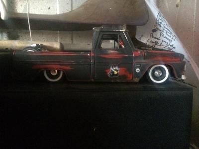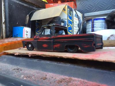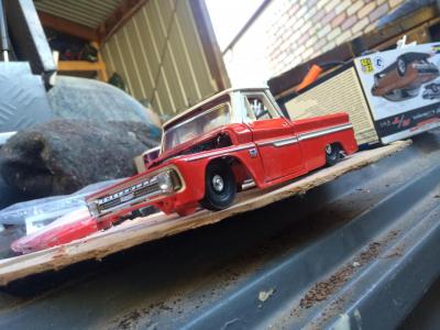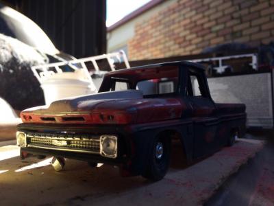 Had this old girl sitting for years.. Brought her as a kid and as kids do they play with models and things break and they just sit the broken wheels back in the fenders and never touch them again.. So I thought I'd pull her off the shelf after 8 years on never touching it and making something awesome! Firstly being diecast I took the screw-on chassis off and cut the front section of a 68 charger and used it as a base.. The engine that was in this looked to be an extremely in detailed 283.. So I wasn't putting that back! I thought I'd go different with a 426 which I sourced from a 68 charger which got absolutely munched while moving house. With the body I've made a reverse cowl for the bonnet and I am shaving the door handles and mirror mounts and taillights and making a valence panel with 59 Cadillac taillights I have sitting around. A nice matte white or black paint job with some pinstripes I have laying around and she will be a nice bagged rat rod pickup with a nice big hemi and something to tow my 67 chevelle dirt tracker!