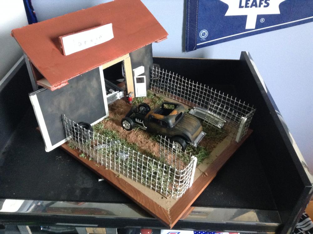 This is the first diorama that ive every done before and also the first time iv weathered a model before so there was lots of learning. the building is made of project board the base is a picture frame the fence is chicken fence that i cut and bent. When its all said and done i think it turned out fairly well fo rmy first one. Thanks for visiting!