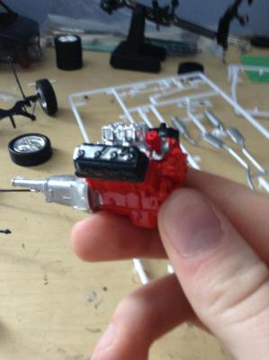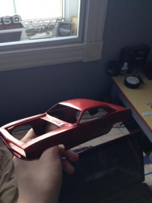 Thanks everyone! had a hold up with the clear today, i had sprayed the body with a tamiya mettalic red that i had left over and sprayed it with a krylon clear and they didnt exactly agree and it screwed the paint. So i stripped it with brake fluid. Just a question does anyone knows if the paint will still stick if i just wipe it off or should i clean it with something or what. I was going to spray the engine with genuine hemi orange but it was a little expensive at the dodge dealership so i just went with a generic orange. Help on the paint issue would be very helpful. thanks for all the comments and keep them coming, Thanks again!