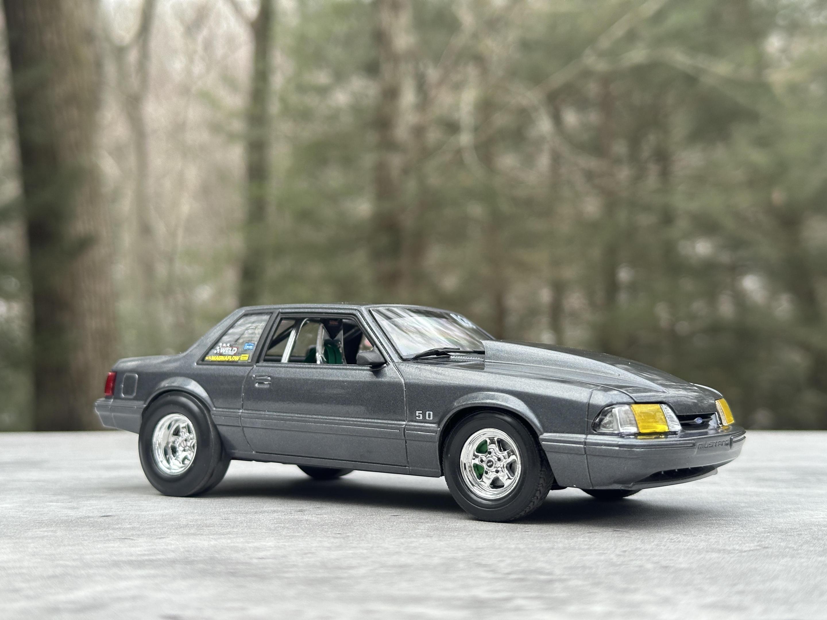Hello Everyone, I’m starting off 2025 with a build that lingered from 2024. Here is my version of the 1990 Ford Mustang by Revell. It’s mainly box stock, other than seat belts, plug wires, and an ignition. I painted it with Testors Graphite Dust and Testors Clear. Various other paints were used through out. I wet sanded and polished it, then hit it with Tamiya polishing compounds which I tend to be a fan of. I recommend this kit and it was a fun one to build with nice aftermarket parts out of the box. Thank you for checking it out and I hope you all enjoy. - Steve