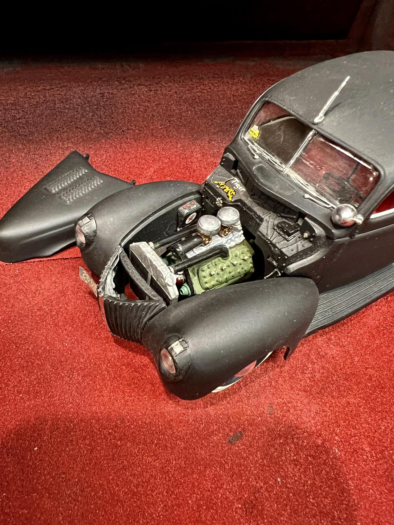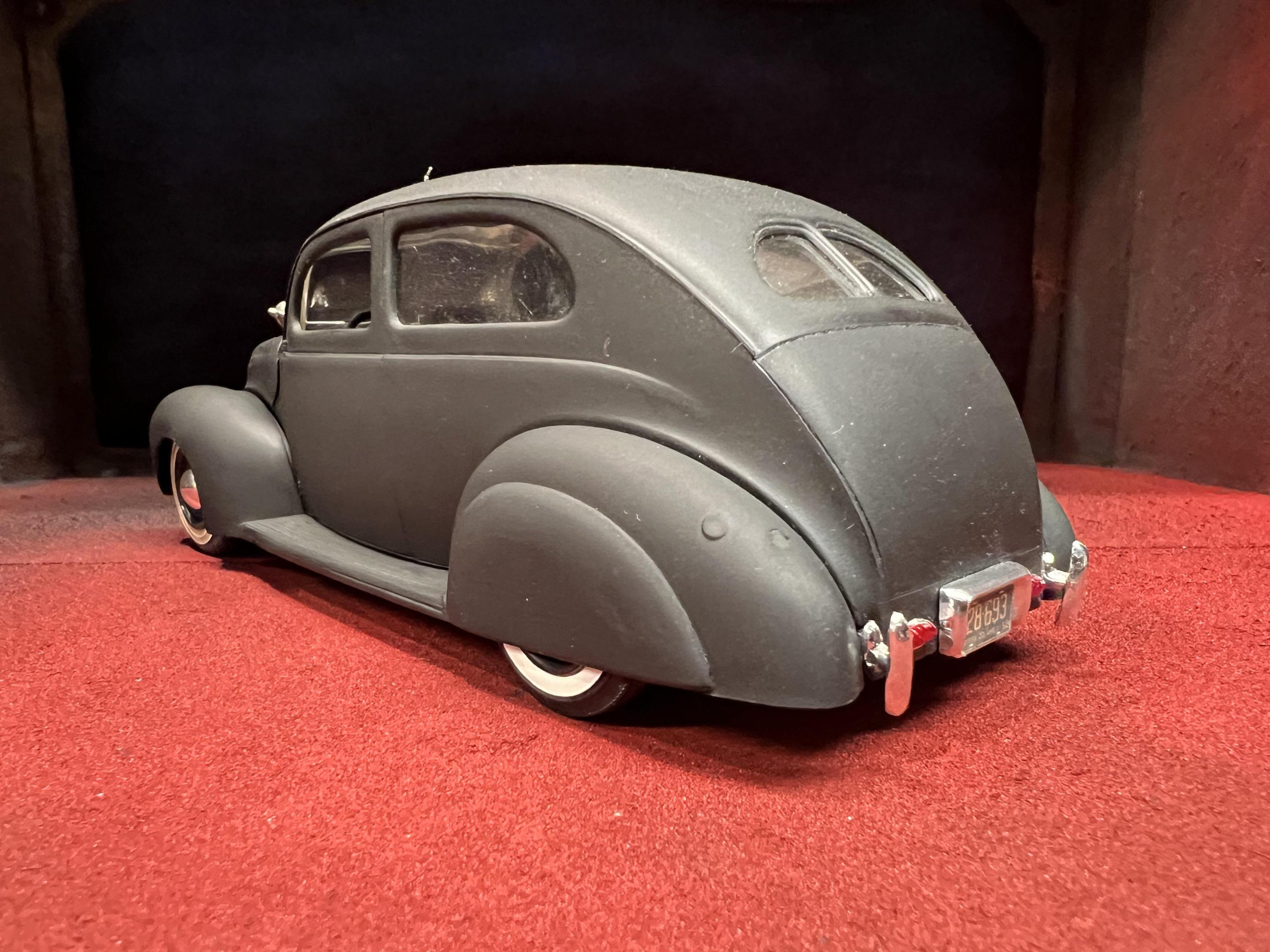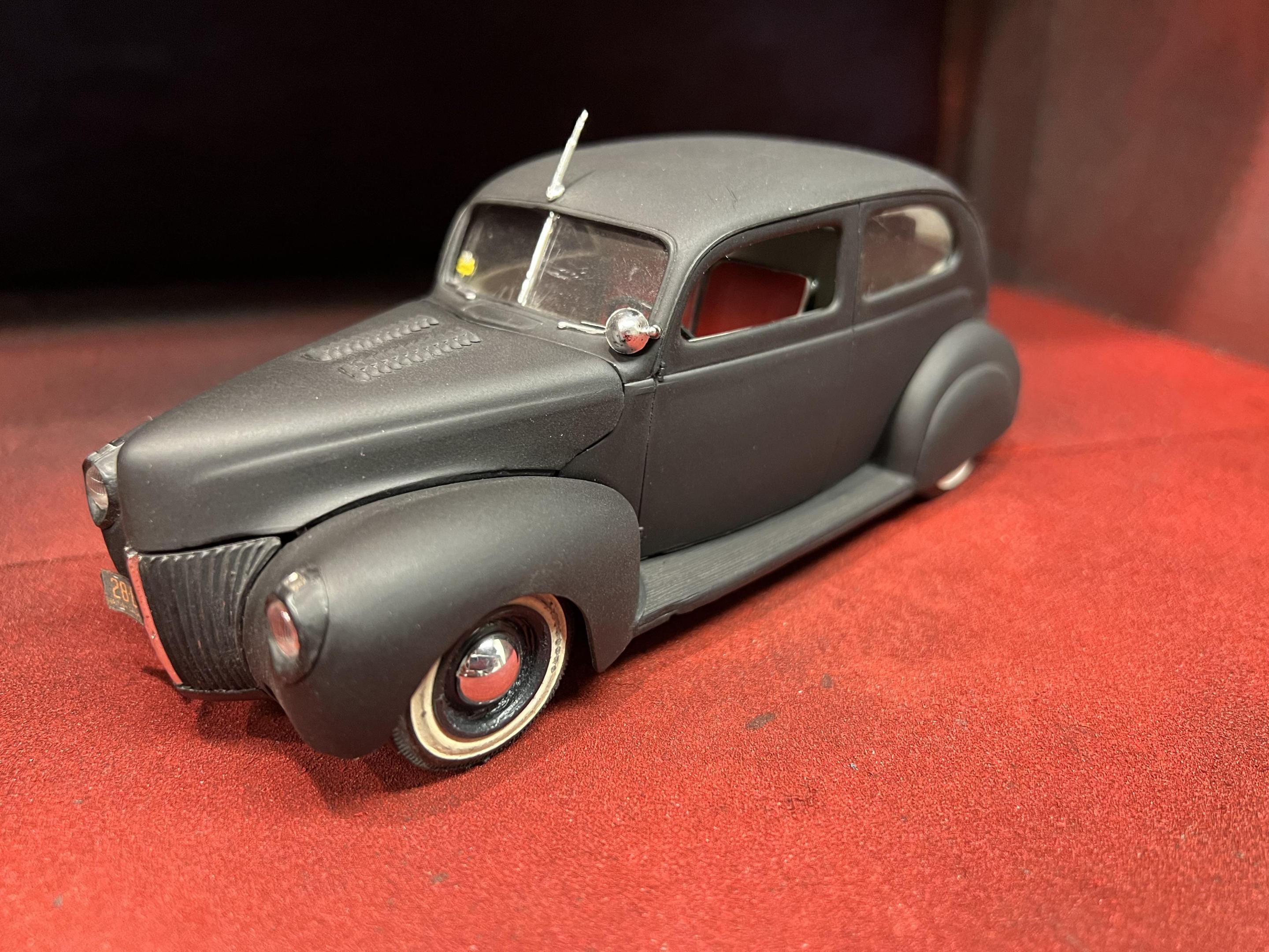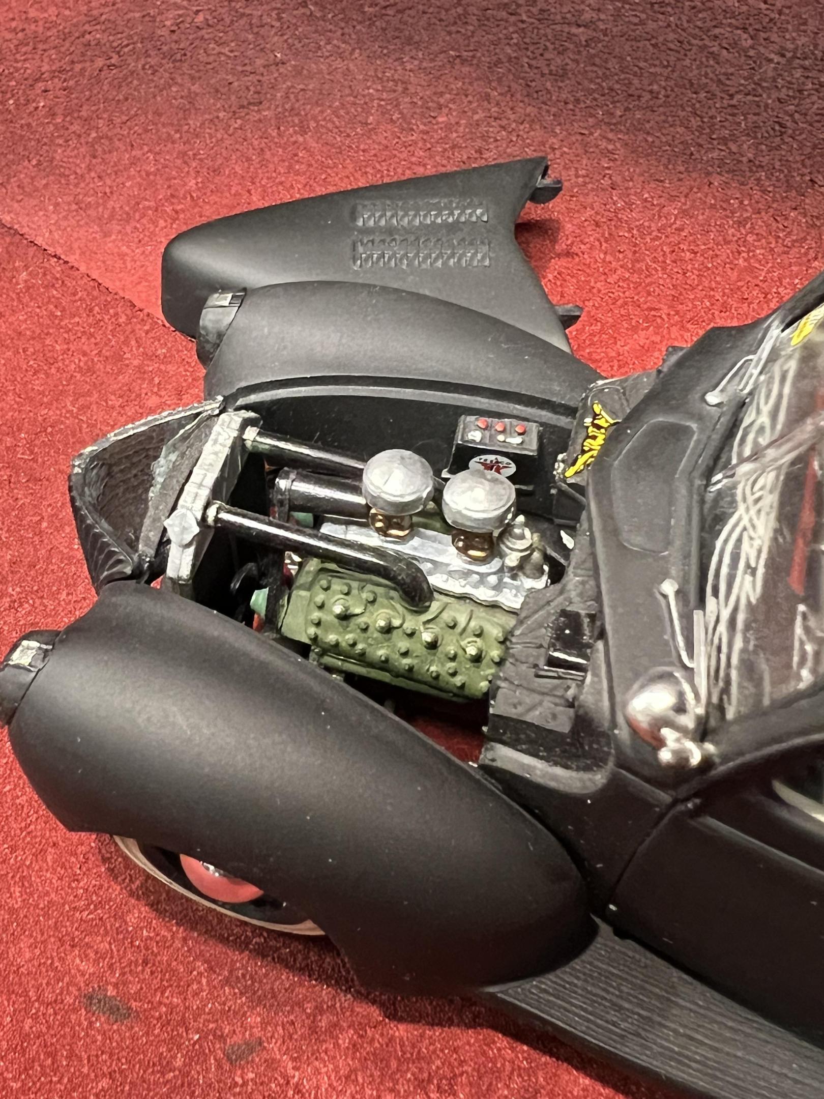 19. I've never put dual carbs on a stocker 1932 Ford V-8 engine but this was the closest quickie modification that I did years ago. It was on a quick glue-bomb rebuild where I turned an old AMT '40 Ford Sedan into a '50s teenager's street rod. On the '40 flathead V-8, I merely replaced the stock intake manifold with the dual-carb manifold from the AMT '50 Ford Convertible kit, then added two parts-box 1-bbl carburetor/air cleaner units (from old AMT '32 Ford Coupe or Vickie kits).