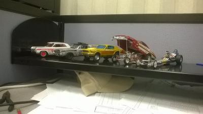 ive been on here for a few months now, not posting just looking at posts but I guess its time introduce myself. Hi I'm Erik I've only been building model cars for about two years. But I've been into model railroading my whole life (modeling the akron branch of the penn central between hudson and akron ohio) I got into cars as a kind of stress free modeling subject so typically I dont super detail any of my builds. I just use them as a break when I get cross eyed from modeling n scale (1:160). I pretty much only build vintage dragsters (50s-70s) and a few rat rods or dirt cars mixed in. The pic is my desk at work... And yes I know tom's rail is a diecast not a model