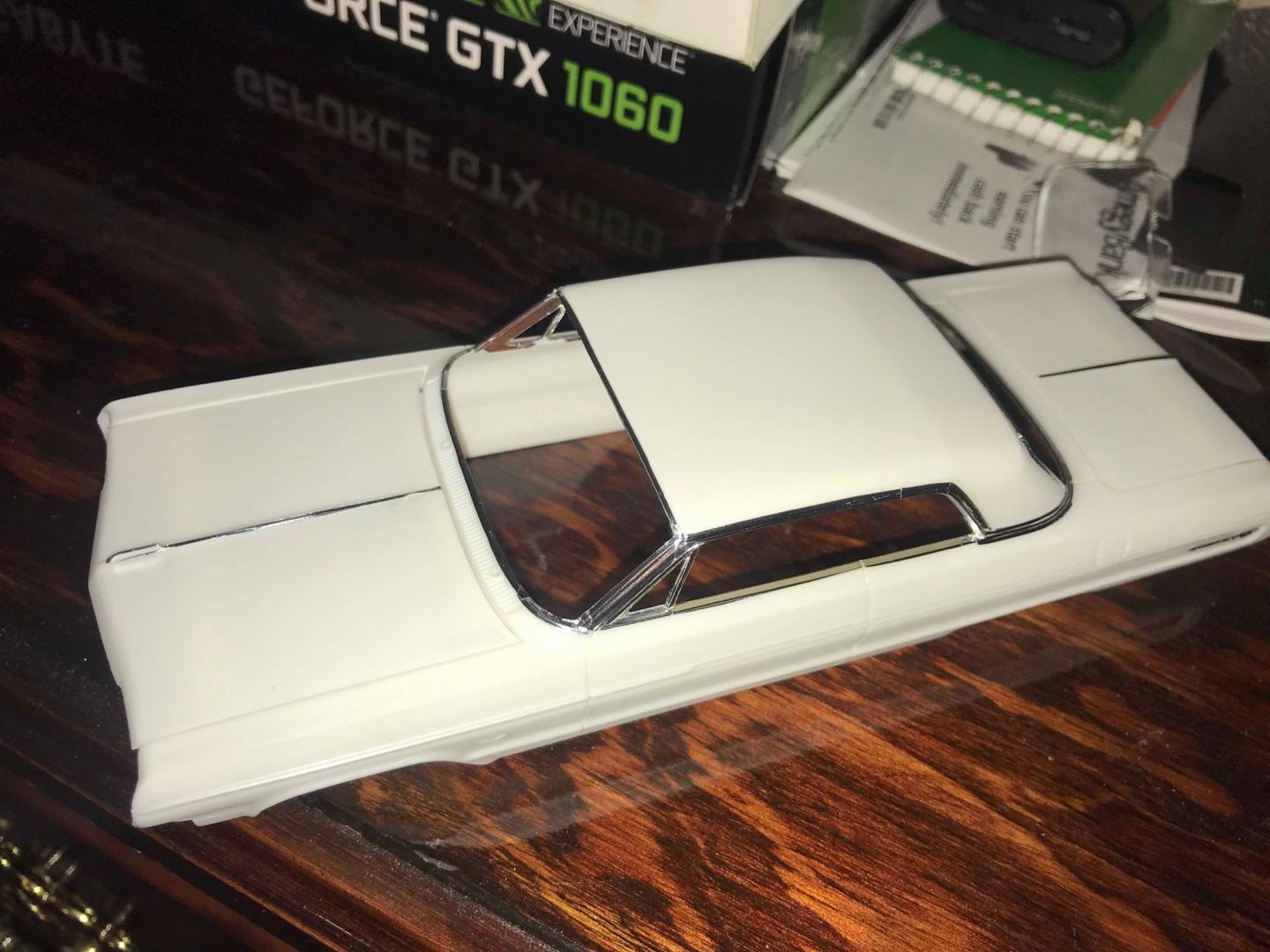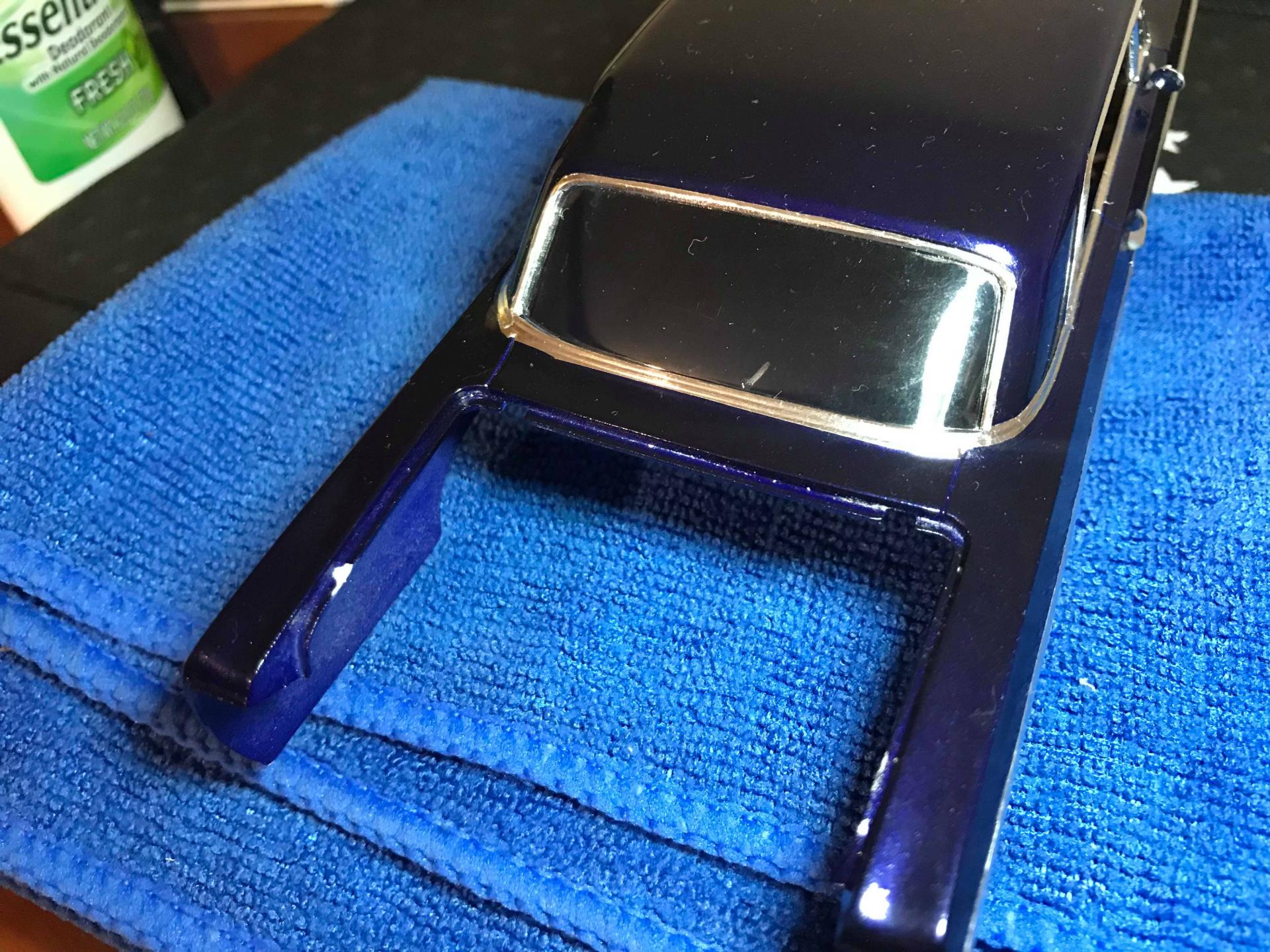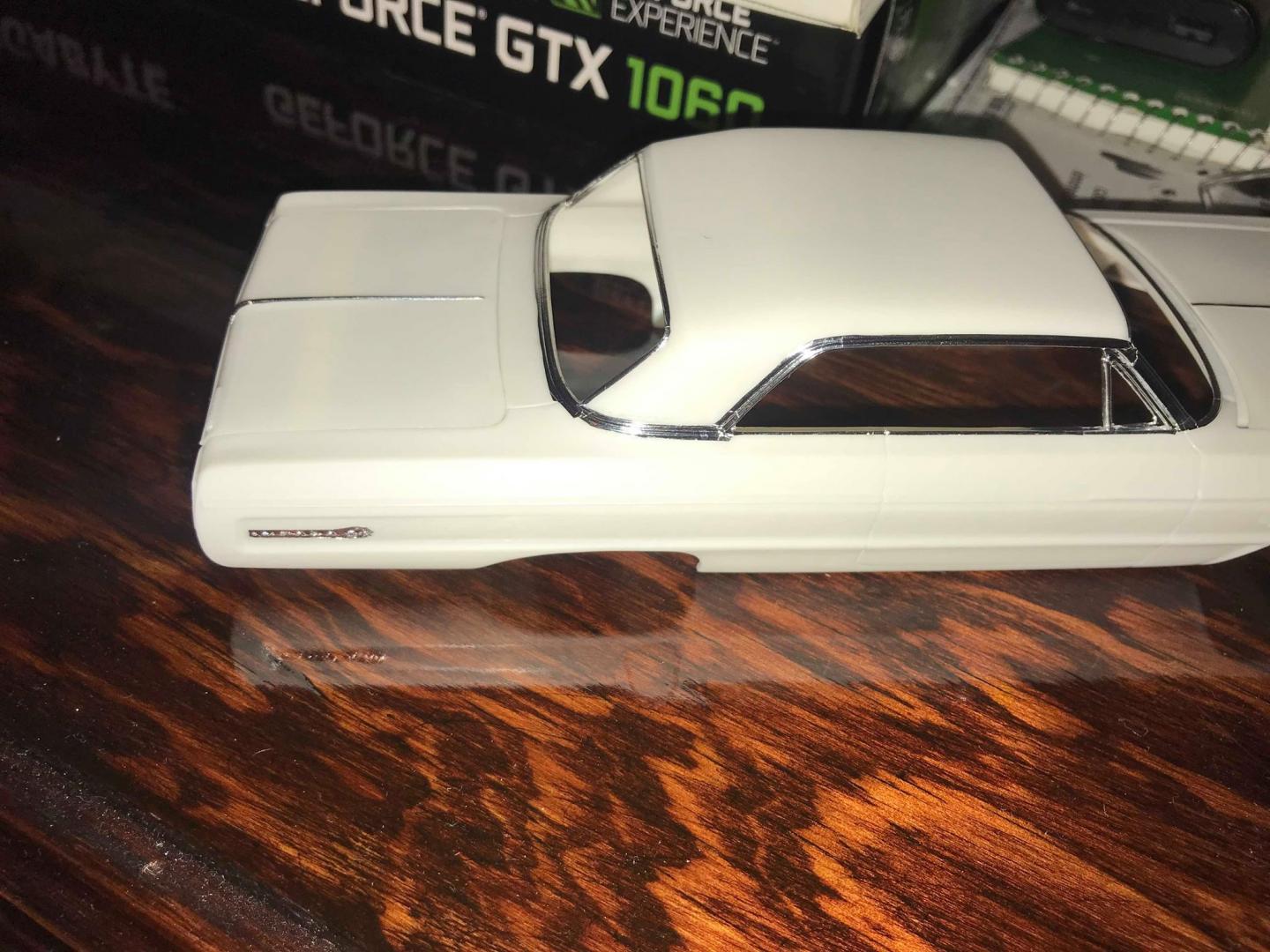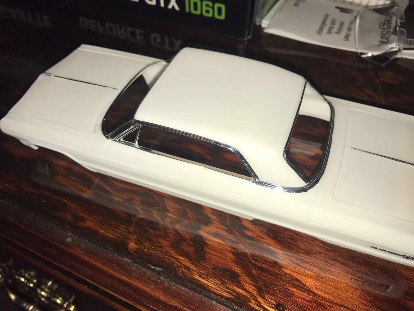 Current progress as of today. Tinted the front vent windows and rear windshield with my 3m 20% VLT film. The rear was a challenge to do because of the curve, but I did the best I can. My build isn't going to a competition so..BMF'd all the top trim and windshield trim. Will do the body and trunk trim as soon as my matte aluminum BMF arrives in the mail..I BMF'd before painting and priming. Yeah I might expect some flack for doing it that way, but I'm sure I can make it shine through the paint.