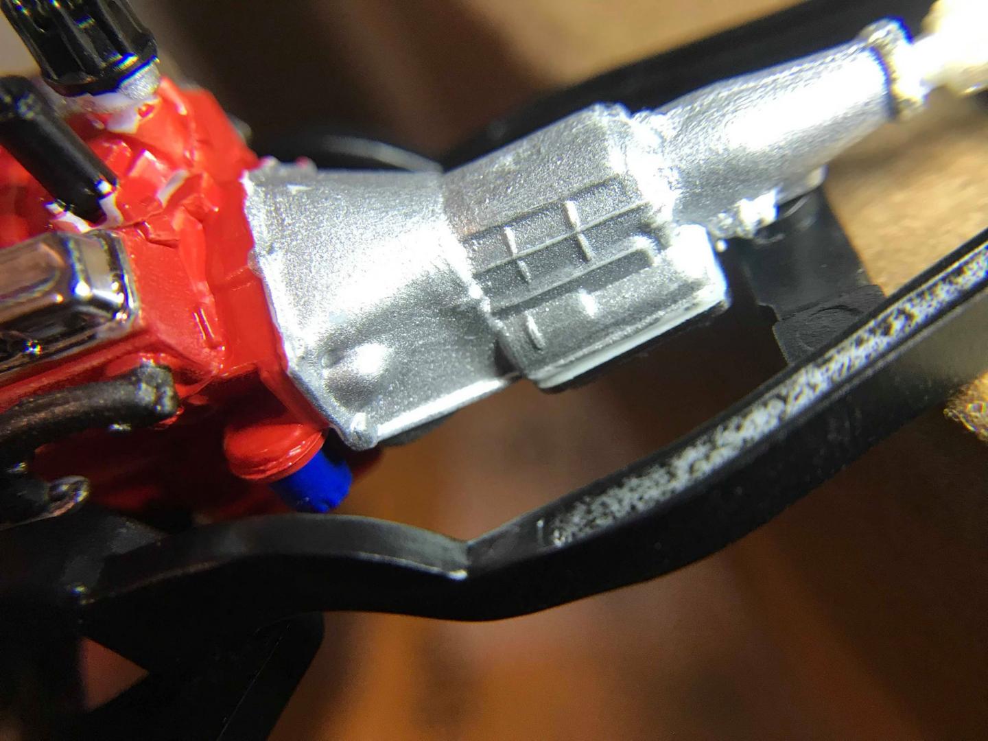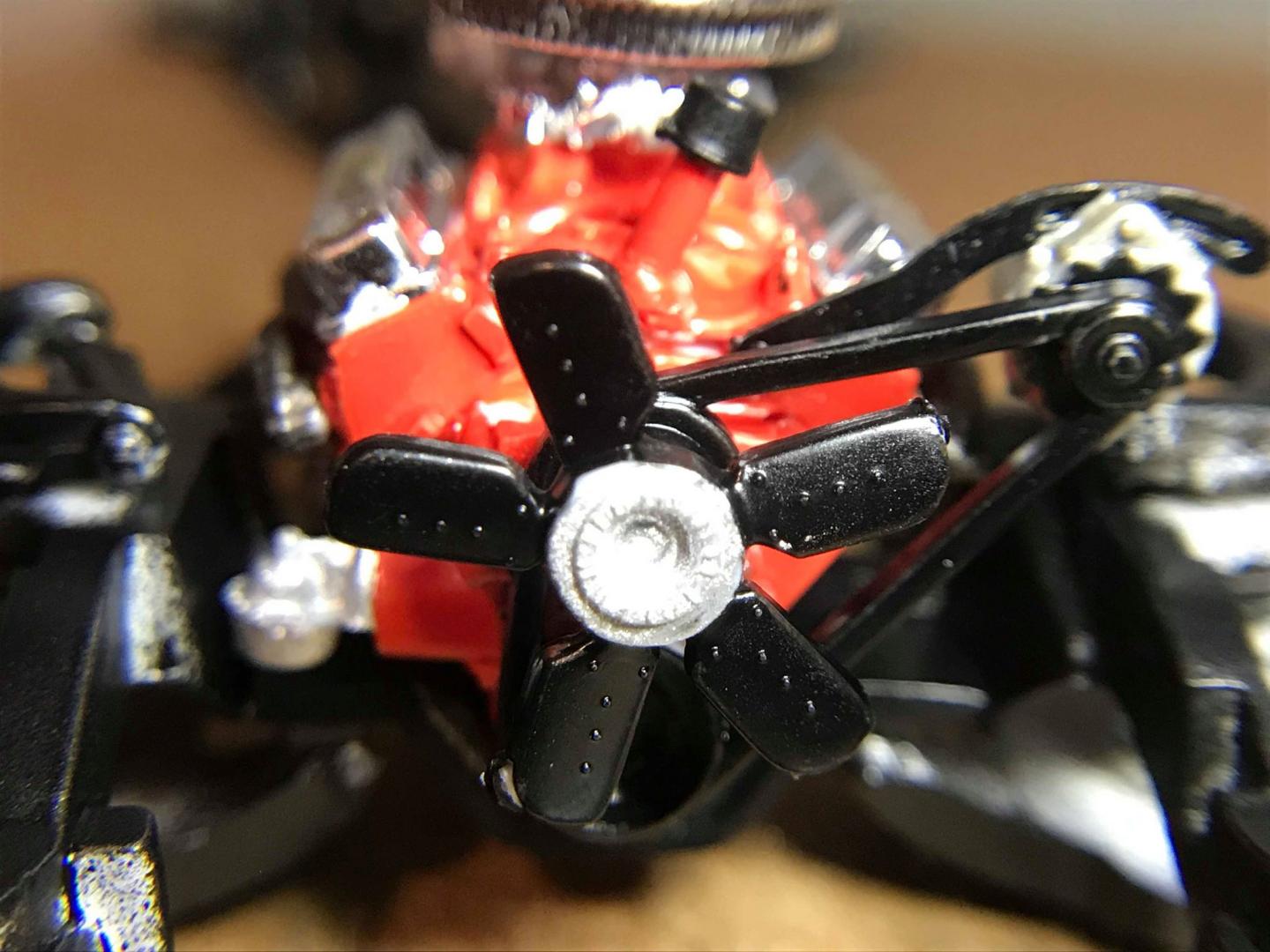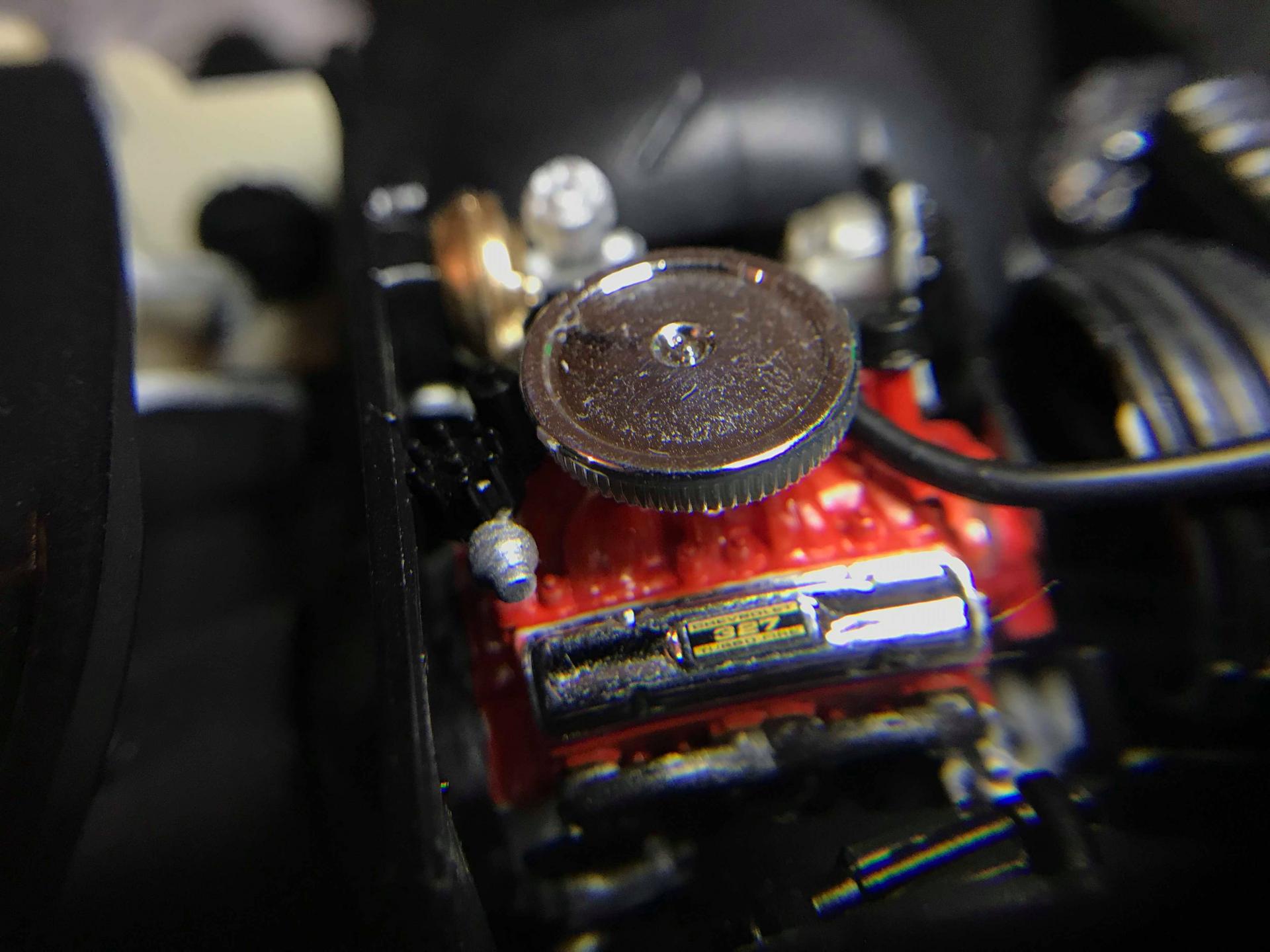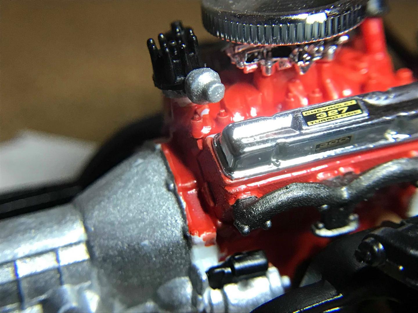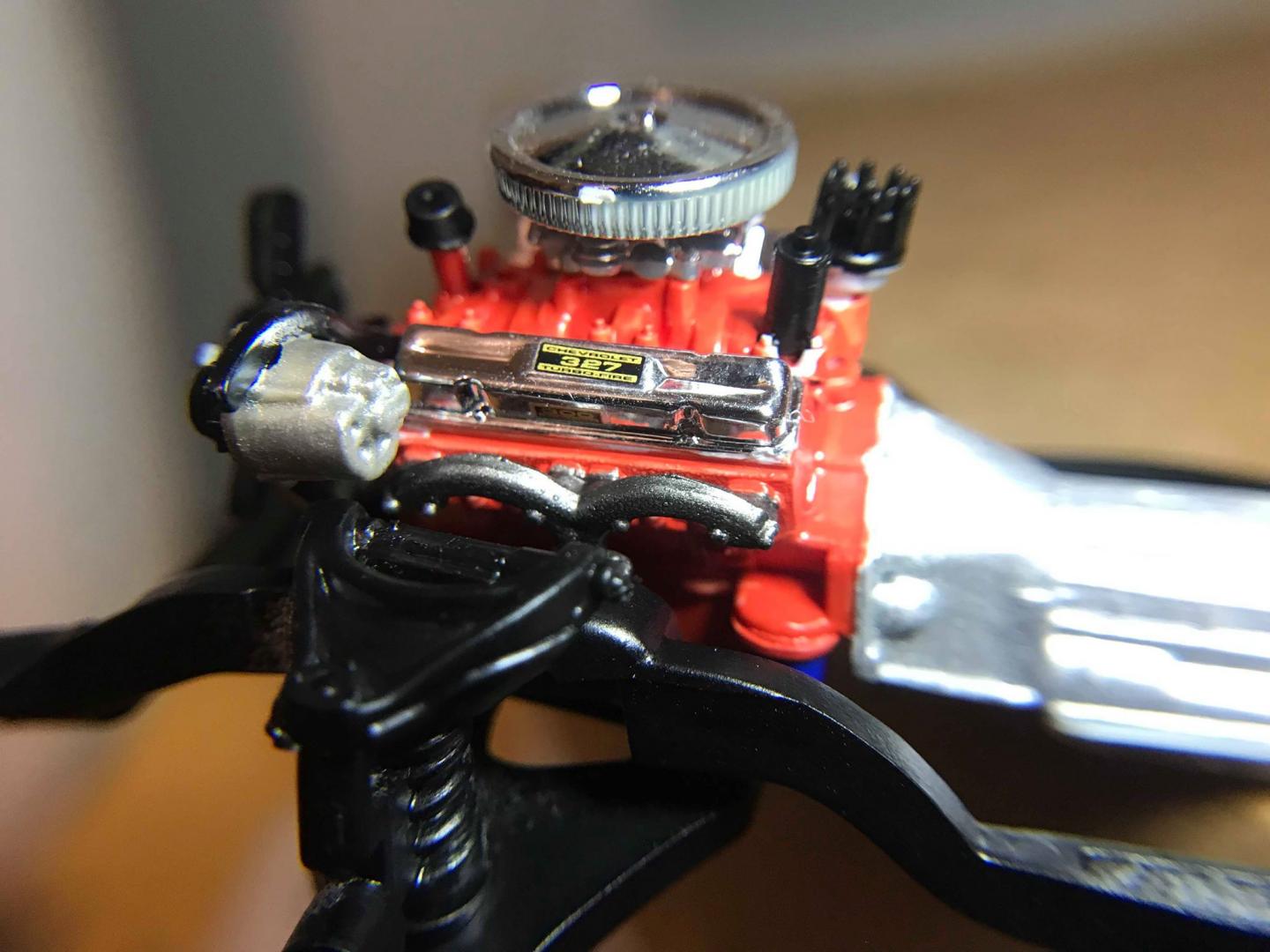 So, I semi-trashed my first Revell 1964 Impala SS (China made kit) build and rather would build it differently than what I had originally intended to. I stripped off the paint from it and will paint in another color, possible a Chevy aqua marine color. So that kit is shelved and stopped for now. So, I decided to buy another 64 Impala model kit, but this time is made in the USA. I much rather have the USA made Revell model kits. With that being said, the USA made version will be here to stay and the first one I bought will be built and sold on ebay. As of right now, I have completed the engine build and chassis assembly. I'm waiting to go buy Pegasus 1:25 custom rims for my 64 Impala so its sitting on ground lol. Details on the build: Engine is painted in full red Chevrolet red orange from intake to oil pan. I left valve covers chrome and added "327, 300HP" decals on them. I used the custom intake with the Holley Carburetor and the chrome air cleaner that was meant for the lowrider built, but I am going with stock with a few extras Transmission is painted in aluminum paint along with the starter, distributor vacuum advance unit, fuel pump and clutch hub on the cooling fan. I painted the oil filter dark blue mixed with some white to make it as close as possible to a real AC Delco oil filter. Without further ado, enjoy!! More post coming in the near future! PS, I know I missed some spots with my brush, but eff it, its gonna put under a car body permanently so no one is gonna judge it with a magnifying glasses lol and also its not going to a model building contest!