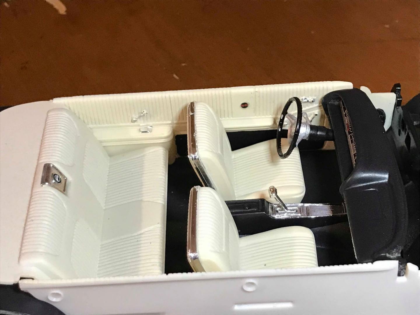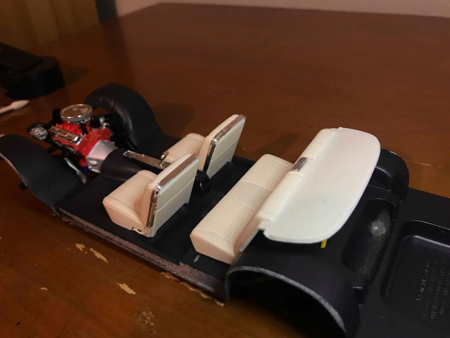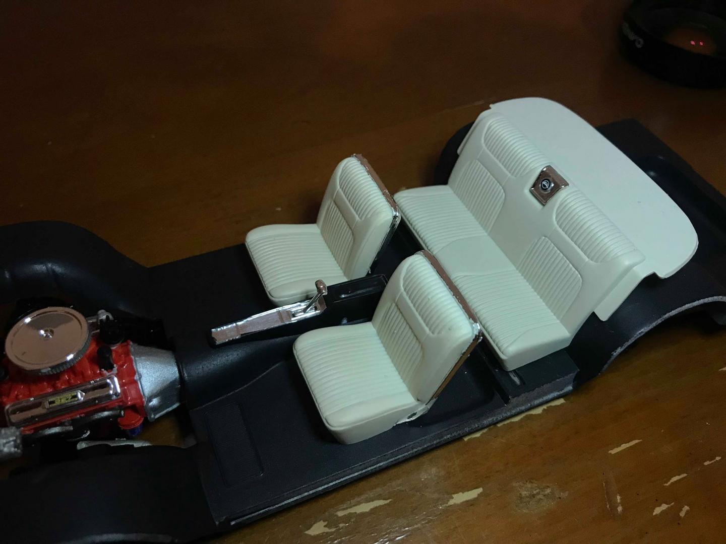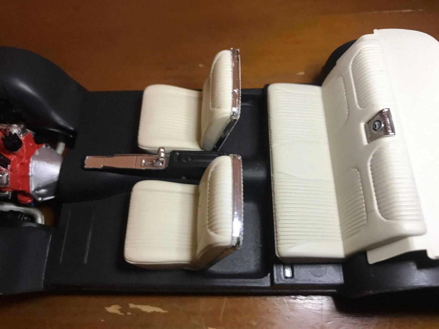 Current progress as of now. Just painted the seats in a custom mixed paint. I used Model Masters flat white acrylic and sand. I kinda overdid the mix of sand which gave a yellowish hue to the white since I want offset the white to make it look oysterish. BMF'd the seat trim and center console. But anyway, enjoy!