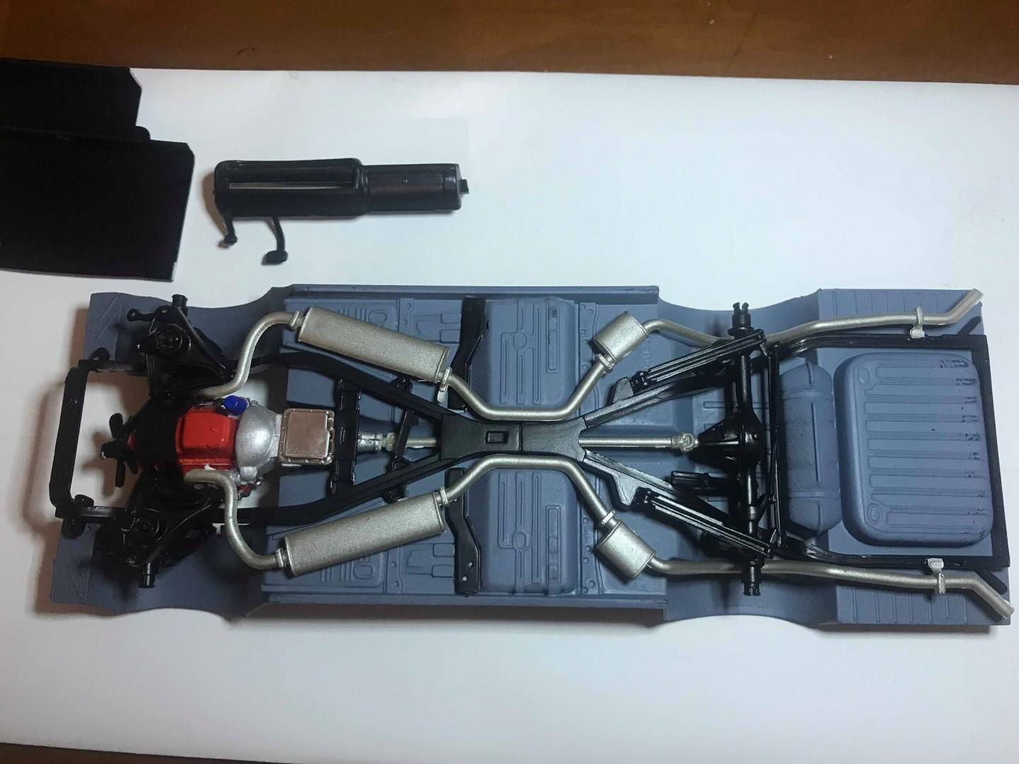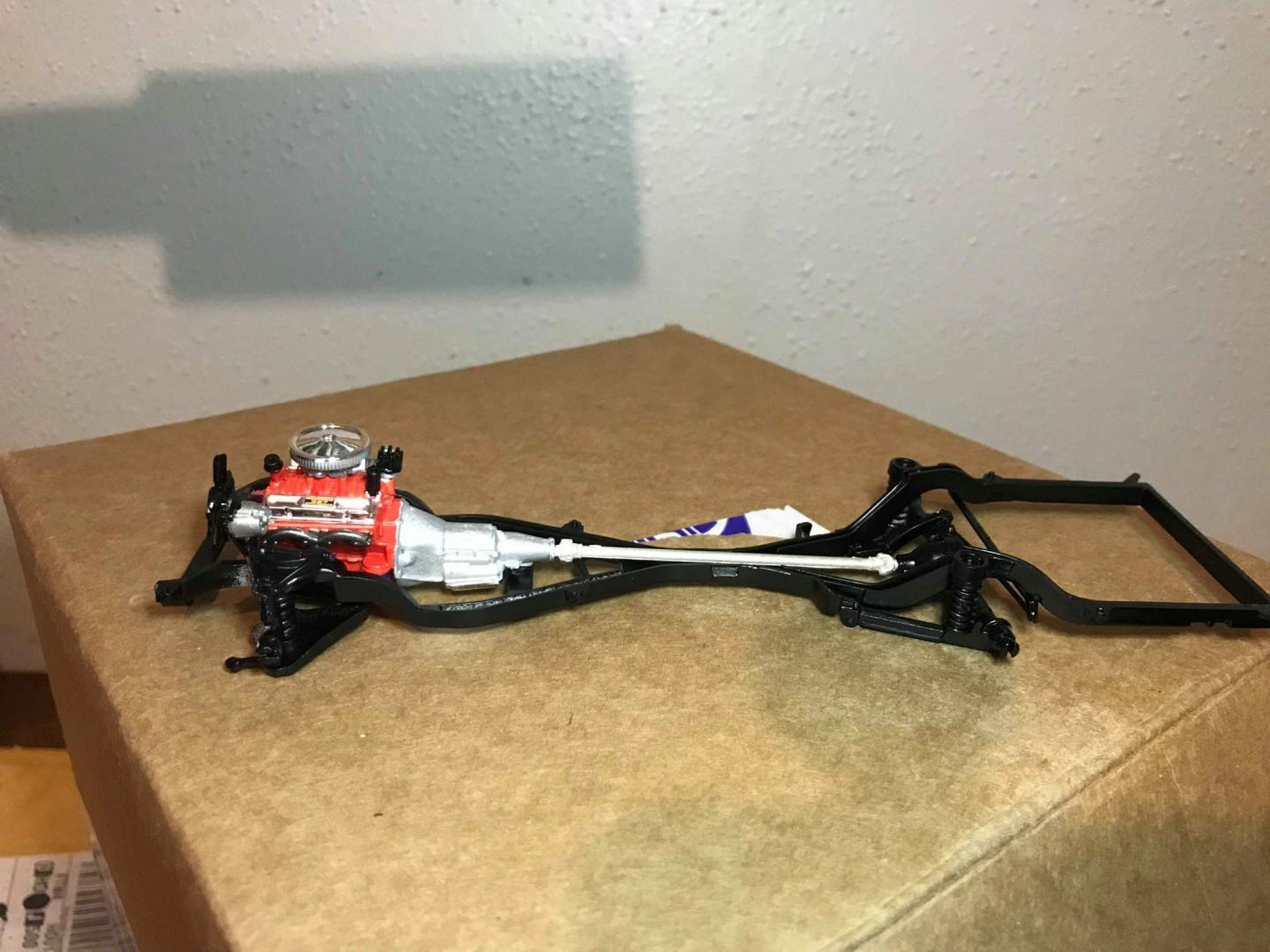 Current build progress as of March 11, 2019.. Assembled the chassis on to the floor pan, painted the floor pan dark grey. Interior floor, console, inner wheel fenders and firewalls painted in a custom mixed gloss black with little semi glass black left with dark gray to make a dark charcoal black. Door panel had details BMF'd, did the best I could. Hasn't been painted yet. PS, I used the Testors amazing airbrush set with gas cylinder. Sure beats the heck out a $250 professional airbrush set!