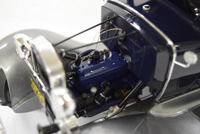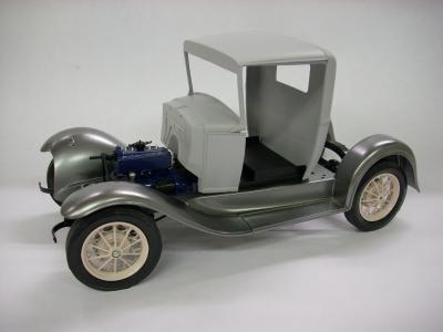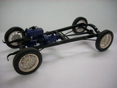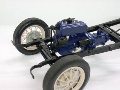 I am trying my hand on a larger scale model this time. It is a Minicraft, 1931 Model A. I bought the kit at a model show as the cover art looked good, however, I didn't inspect the parts trees to see what the quality was like. Some of it is great, some of it, not so much. It is molded in both black and gray plastic and I personally don't like black plastic as it seems too soft and rubbery. The Chrome is good in some places, but missing in other places - bad plating job. I am not building to the box art or to be factory original etc. I am building this one in the colors and things I like. My current idea for the paint will be Gunmetal gray for the bottom half (fenders etc.) and dark blue for the upper half - could change though. Here are some pictures in the current state. Chassis assembled and painted gloss black and semi-gloss black. Wheels (which are poorly molded with a lot of flashing) are painted a cream color (custom mix). Engine is painted Royal blue with Semi-gloss black accessories. Bolt heads are silver, spark plugs are white and silver - very hard to paint as they are small. The engine will be plumbed and wired. I have holes drilled here and there for wires but plan to add those later in the build. Wiring the distributor to the plugs will be a bit of a challenge as it needs flat-bare-braided wires. Never seen in real life but plenty of picture on the net will be my guide. Plastic dipstick broke so I made a replacement with wire. The lower half of the body is painted Gunmetal (tamiya acrylic) and this is the first coat. The floor pan is in place as I have been attempting to mock up this thing to figure out how everything fits. The cabin is in place - sort of. There were suppose to be registration pins on the bottom of the fire-wall section but they are not there. This makes it difficult to get the spacing right between that section and the back half of the cabin. The two pieces join in two small areas - the front roof supports. If I just glue those two pieces together without a lot more planning, the doors will never fit. I have a lot of figuring out on this cabin area so it may take a while before the next post. Thanks for taking a look, comments always welcome. Chris D