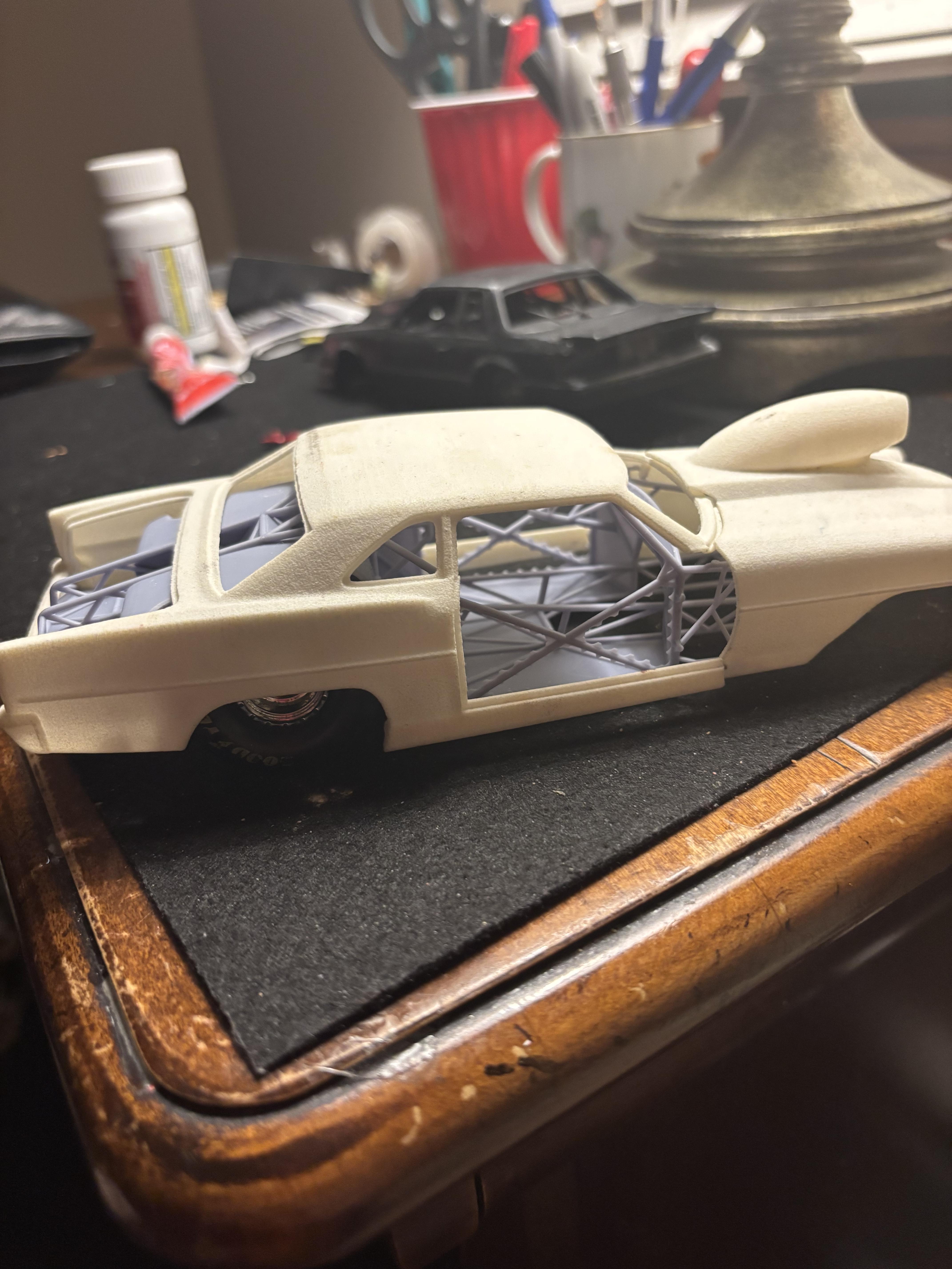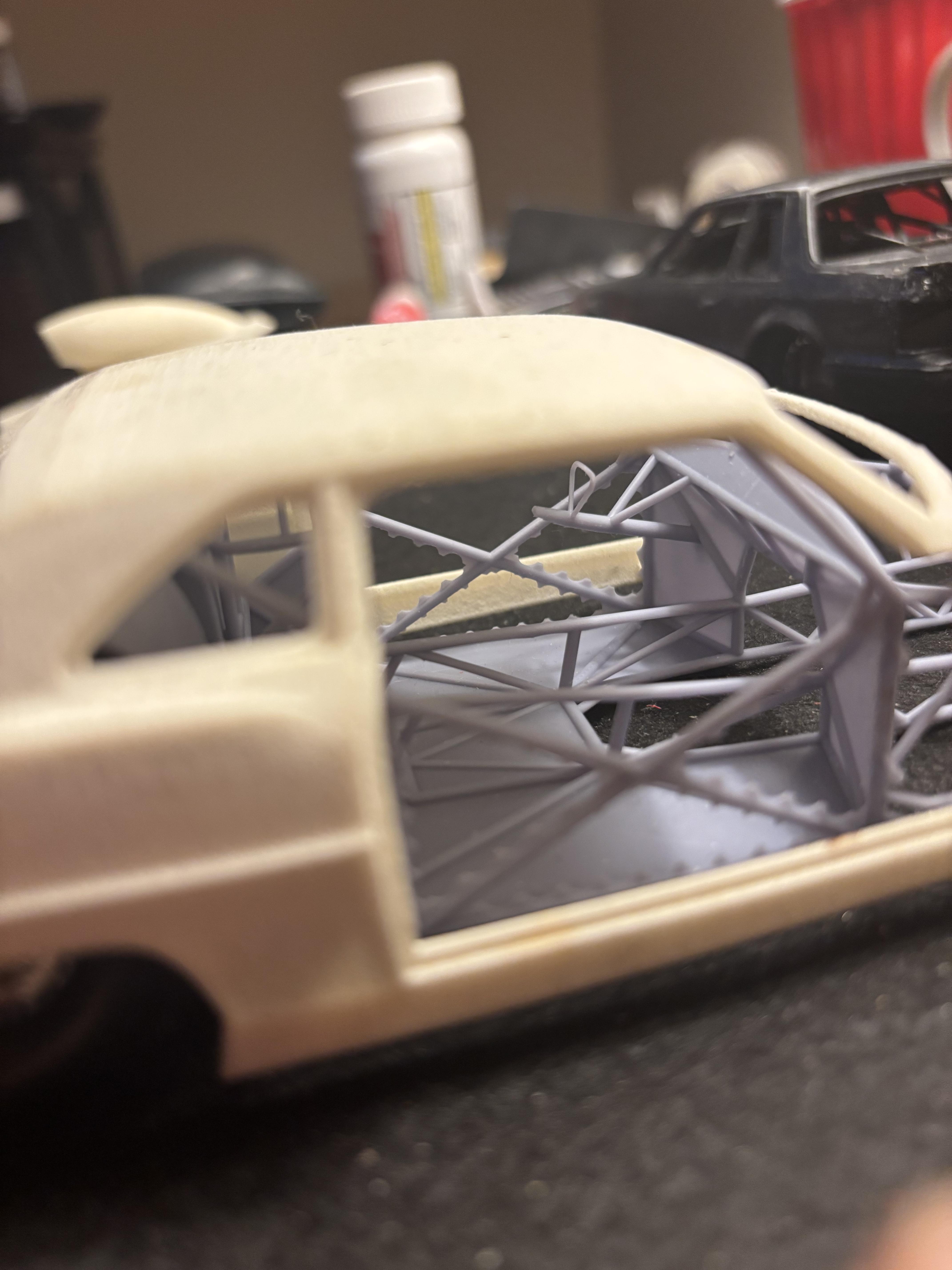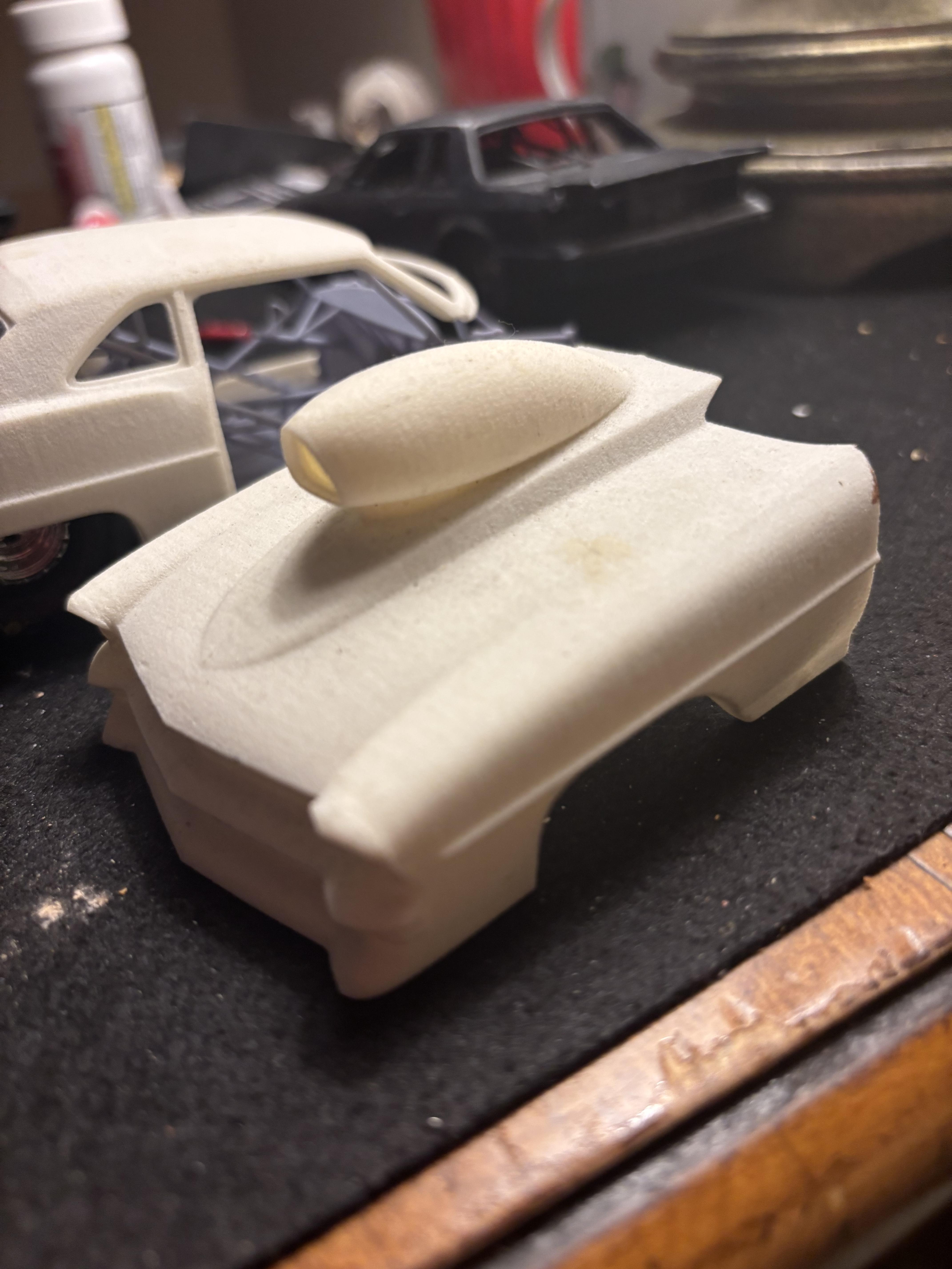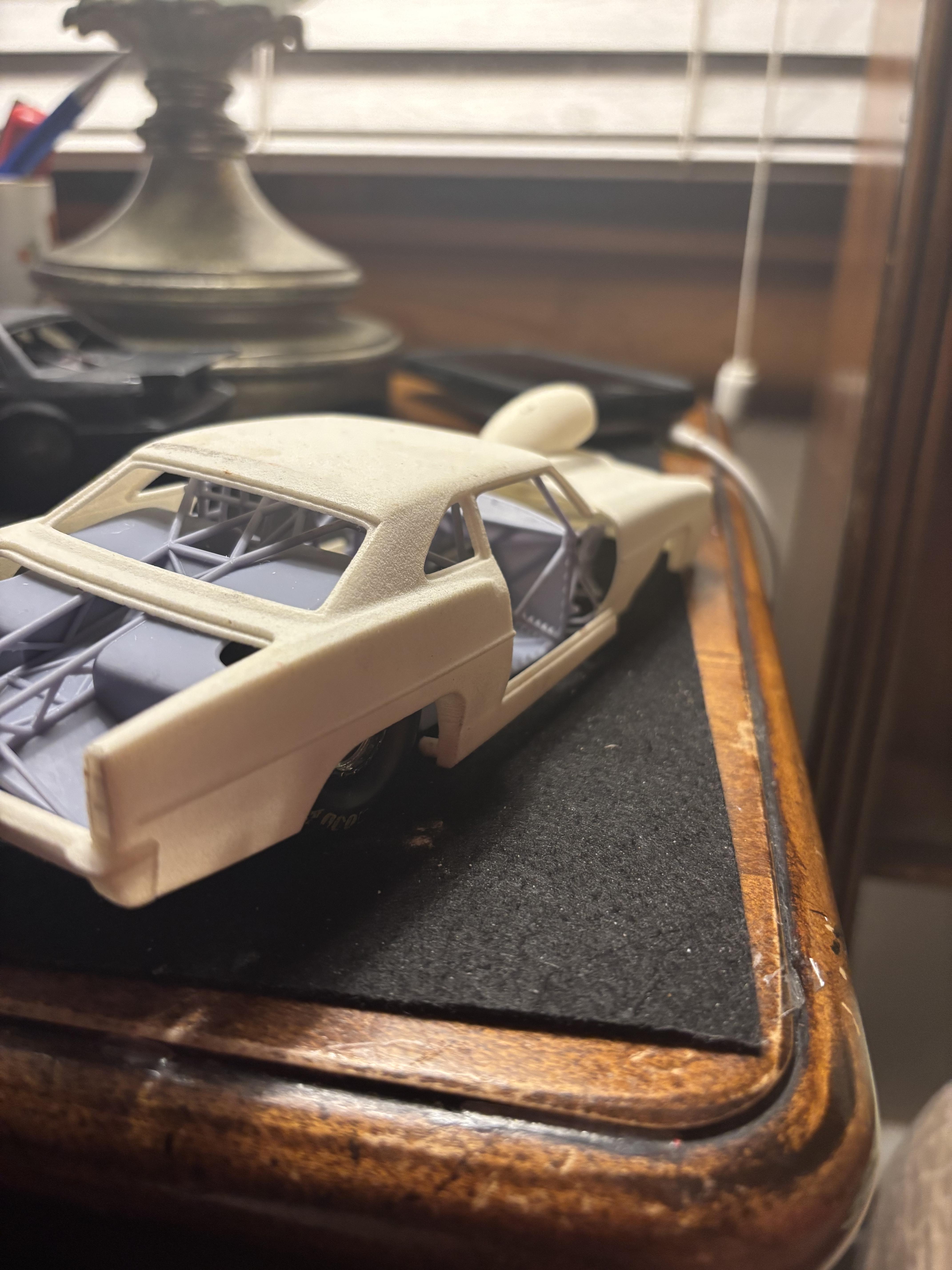 Ok,WIP,,,I'am going to make an attempt to finish this car,but it might be beyond my current building skills,which are fine,except when it comes to painting,I suck.Anyway the resin is very brittle,that’s why the doors and trunk deck are being repaired,after finding small hairline cracks within the resin.But again,like I said ,the model is most likely to difficult to finish