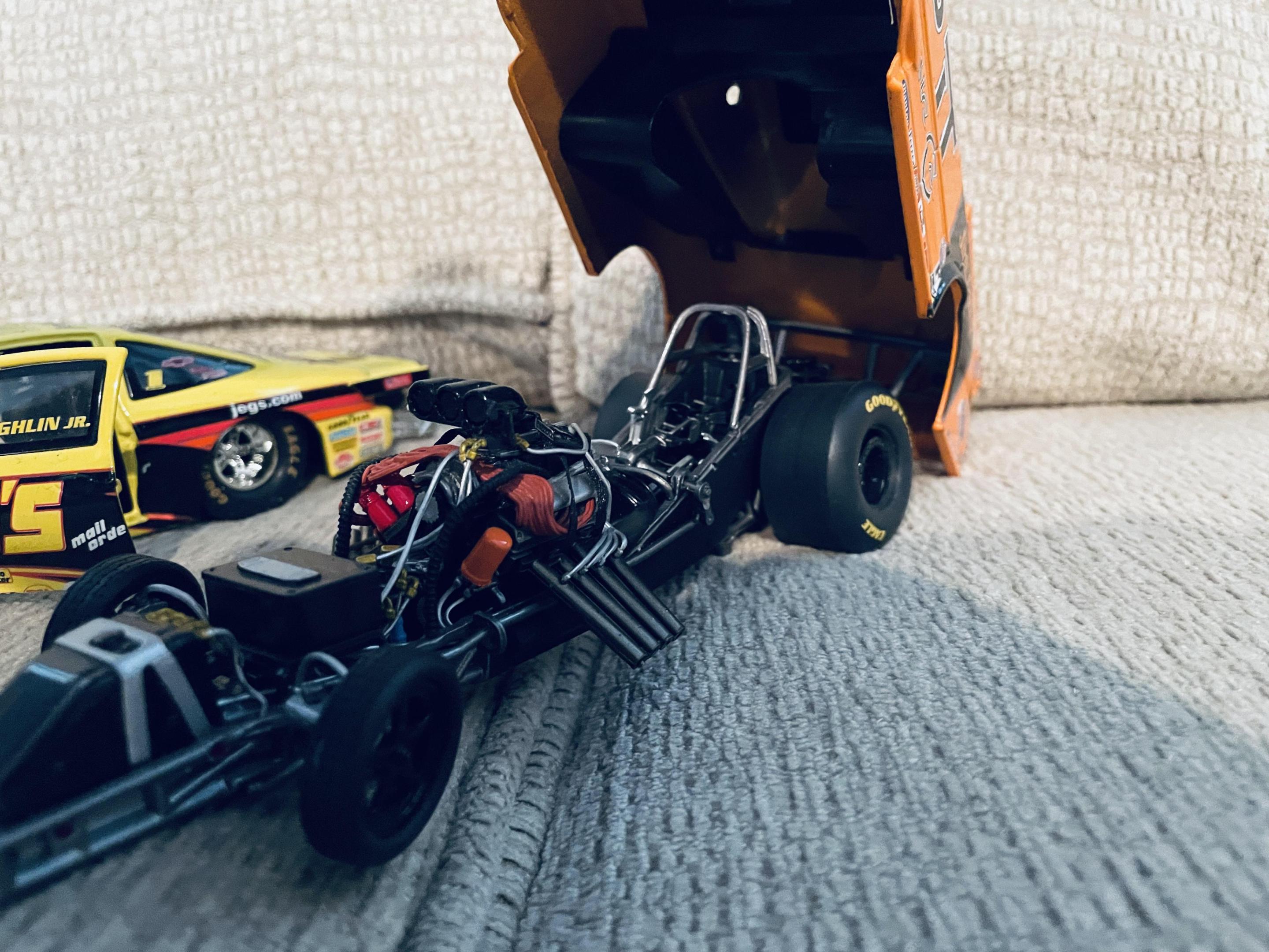 Oh thanks,I have a guy that i buy the most realistic parachutes i’ve ever found on line.They come in different colors,singles or doubles.I’ll send u a couple of pics,and the link to where to buy them.And as far as the rear,it’s out of a Jegs diecast prostock car.