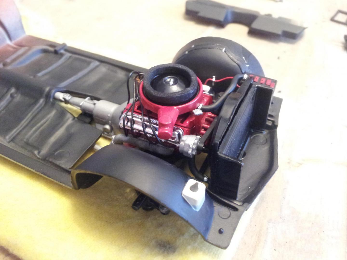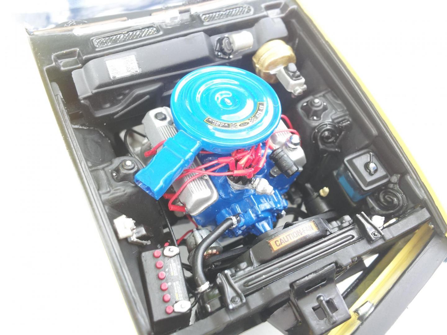 I bought this kit to bash for an upcoming 1970 Pontiac GTO build, but couldn't bring myself to do it. The car and kit just look like too much fun. I added an ignition coil from my parts box. I also made the foam piece that goes on top of the air cleaner, but need to make sure I didn't make it too tall before installing it permanently.