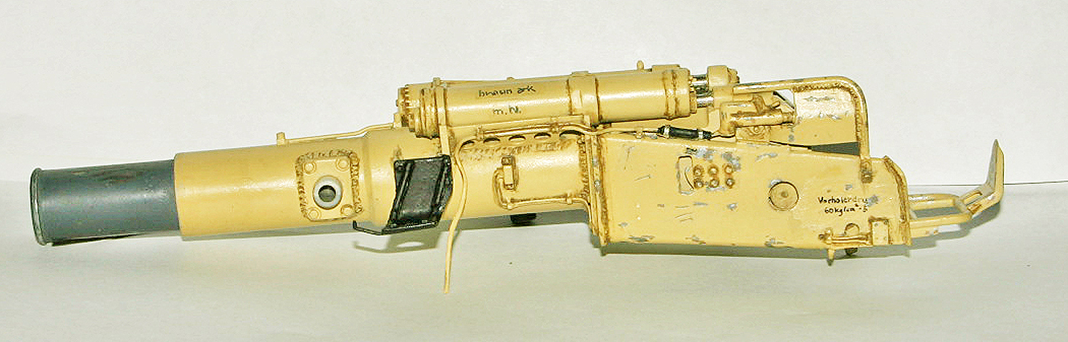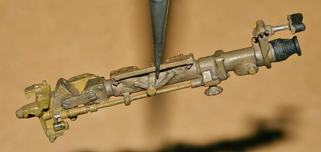 Thank you for your comments, Carl. I could understand not being interested in military models. Armored vehicles aren't what you would consider as sexy and sleek like a Ferrari. Nowhere as fast, either. I enjoy building them because they present a mother lode of opportunities for scratchbuilding extra details and modifications for specific, historically documented vehicles and equipment of all types. Also, they provide a canvas on which one can improvise and improve one's painting and weathering skills. Total time spent on the Bradley was 152 hours, spread over three months. Painting and weathering required more than 1/3 of that time. I enjoy researching the mechanical aspects of AFV's and apply what I learned. These are photos of the Gunner's position in a Trumpeter 1/16 King Tiger. The entire turret basket and floor sections, including the traversing gear housing/elevation mechanism are scratchbuilt from brass. The gunner's traversing foot plate is fully functional, including the lock. With the exception of the hand traverse wheel and shaft, which are kit parts, everything seen in the following pictures was made from brass. The lever on the right is the traversing control. Every part connected to it is fully functional and connects to the Power Take Off motor via the small link rod seen in the first photo. This is a German TFZ 9c tank gun sight. I decided to scratchbuild a fully articulating one for the Trumpeter 1/16 King Tiger: This is the 8.8 cm KwK 43/L71 main gun. All of the molded-on bolt details ere removed and replaced with 0.3 and 0.5 mm brass hex bolt. The recoil buffer at the top contain spring loaded steel rods, replacing the plastic kit parts; so, now it recoils in the same manner as the actual mechanism. all of the stenciling on the recoil buffers and side plate were hand drawn using a .13 mm technical pen. I do take my scratchbuilding seriously.