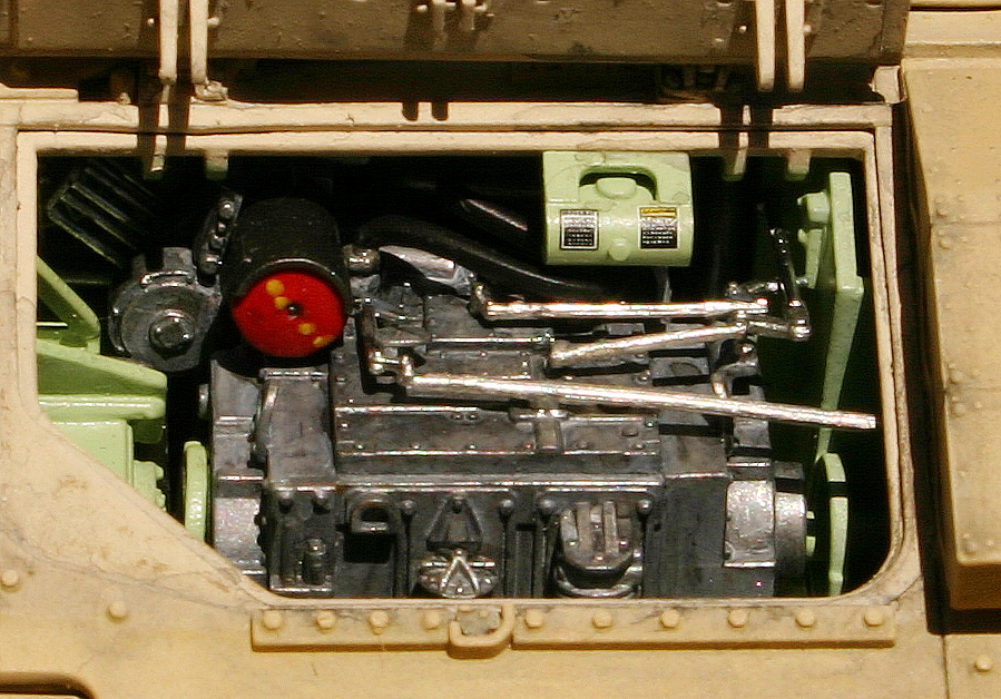 I just finished this. It's a Meng M2A3 Bradley w/BUSK III. Meng did a superb job with this kit. It has a fully detailed turret, driver and crew compartment, detailed engine compartment and individual workable suspension and track links. I built it OOB, with the exception of adding anti-reflection coatings on the thermal sight/commander's CITV and the various periscopes. AFV Cub's AC35017 Anti-Reflection Stickers for M1A1 AIM/M1A2 SEP were adapted for use on the Bradley. The model was painted with an overall coat of MM 4720 Acryl Sand FS33531. The interior was painted using Krylon ColorMaster Satin Pistachio Color/Primer, which is a dead-on match for FS 24533 Seafoam Green. Weathering was applied using Vallejo Model Color acrylics applied with Q-Tips, cosmetic applicators and misted on with an airbrush for a dust coat. Using Q-Tips dampened with water and 91% IPA, the weathering colors were blended and then wiped with a lint-free cloth. It was an enjoyable project; and, I'm definetely going to get a couple more. This kit is that good. Thanks for looking in.