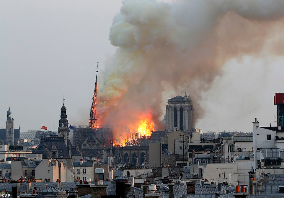 Absolutely tragic....... Spire of Paris's 850-year-old Notre Dame cathedral COLLAPSES as fire ravages historic building
