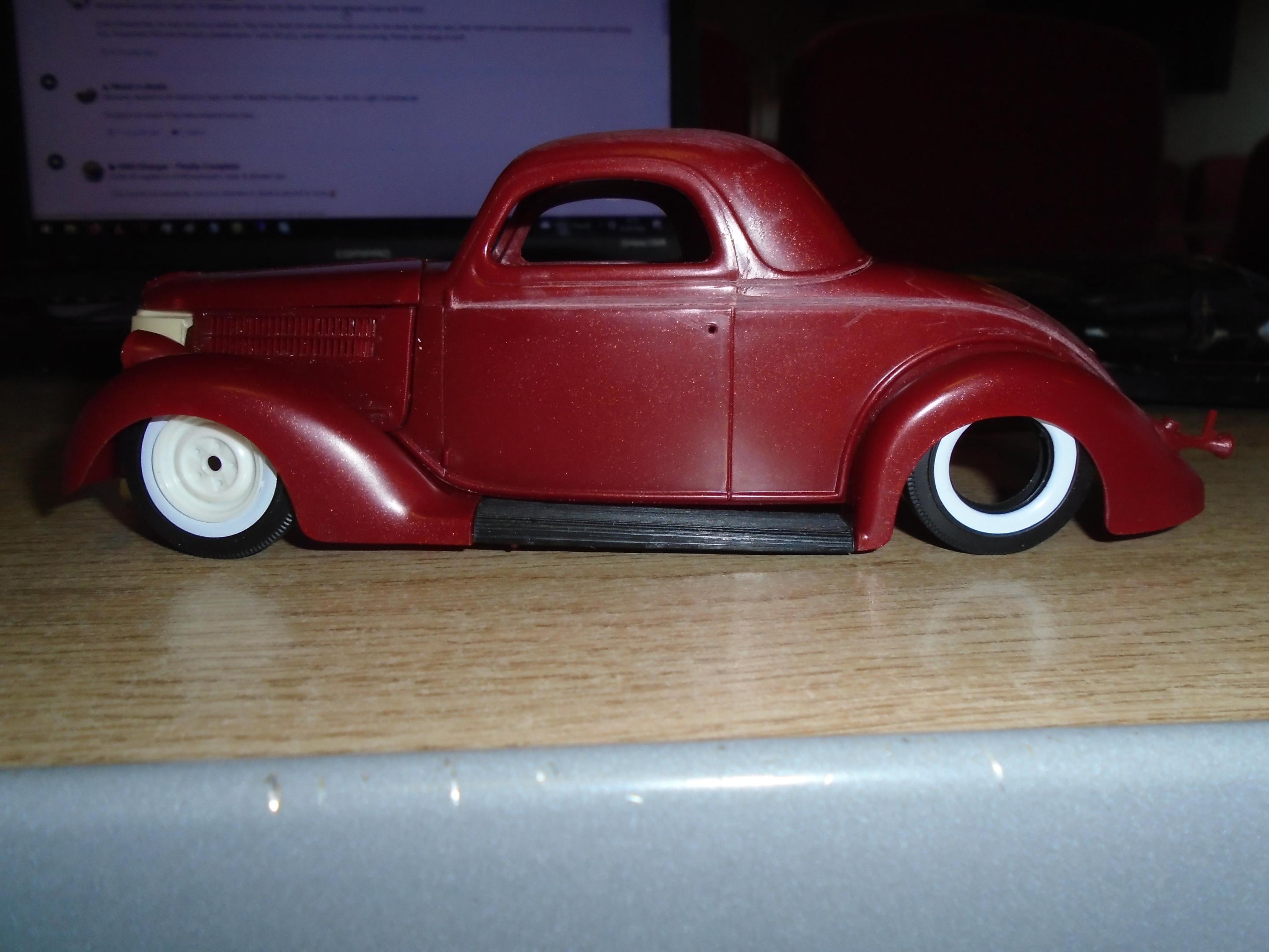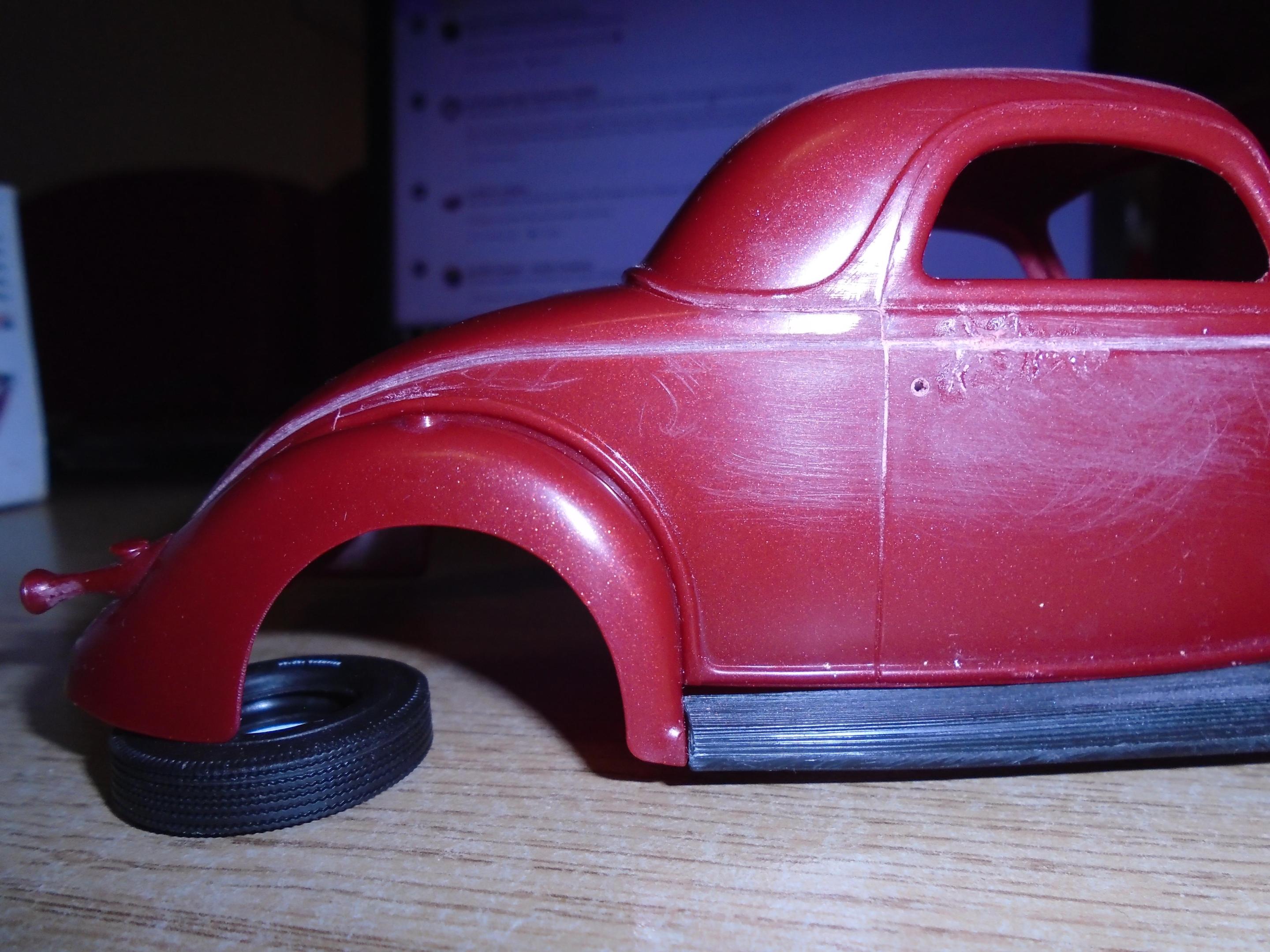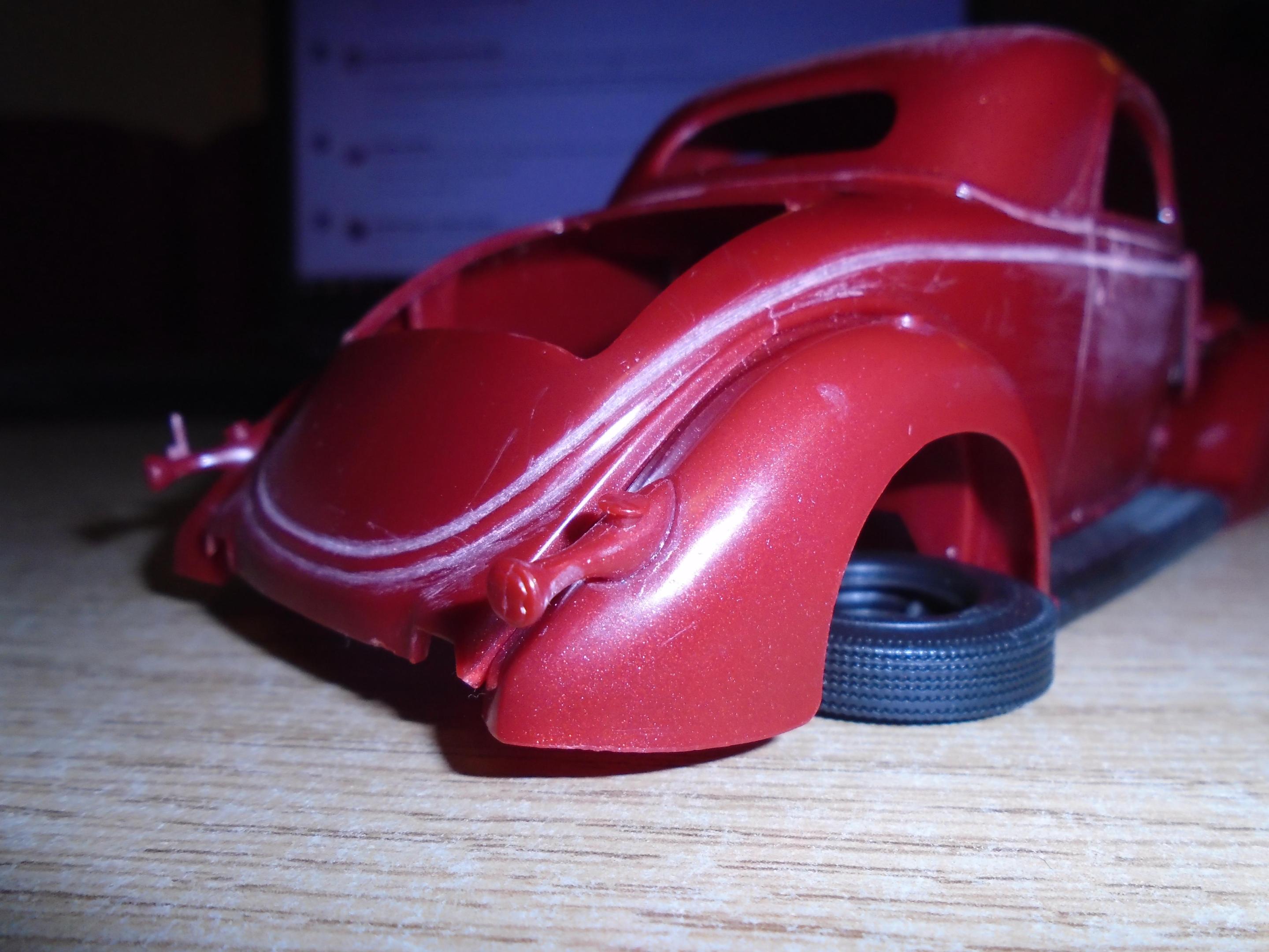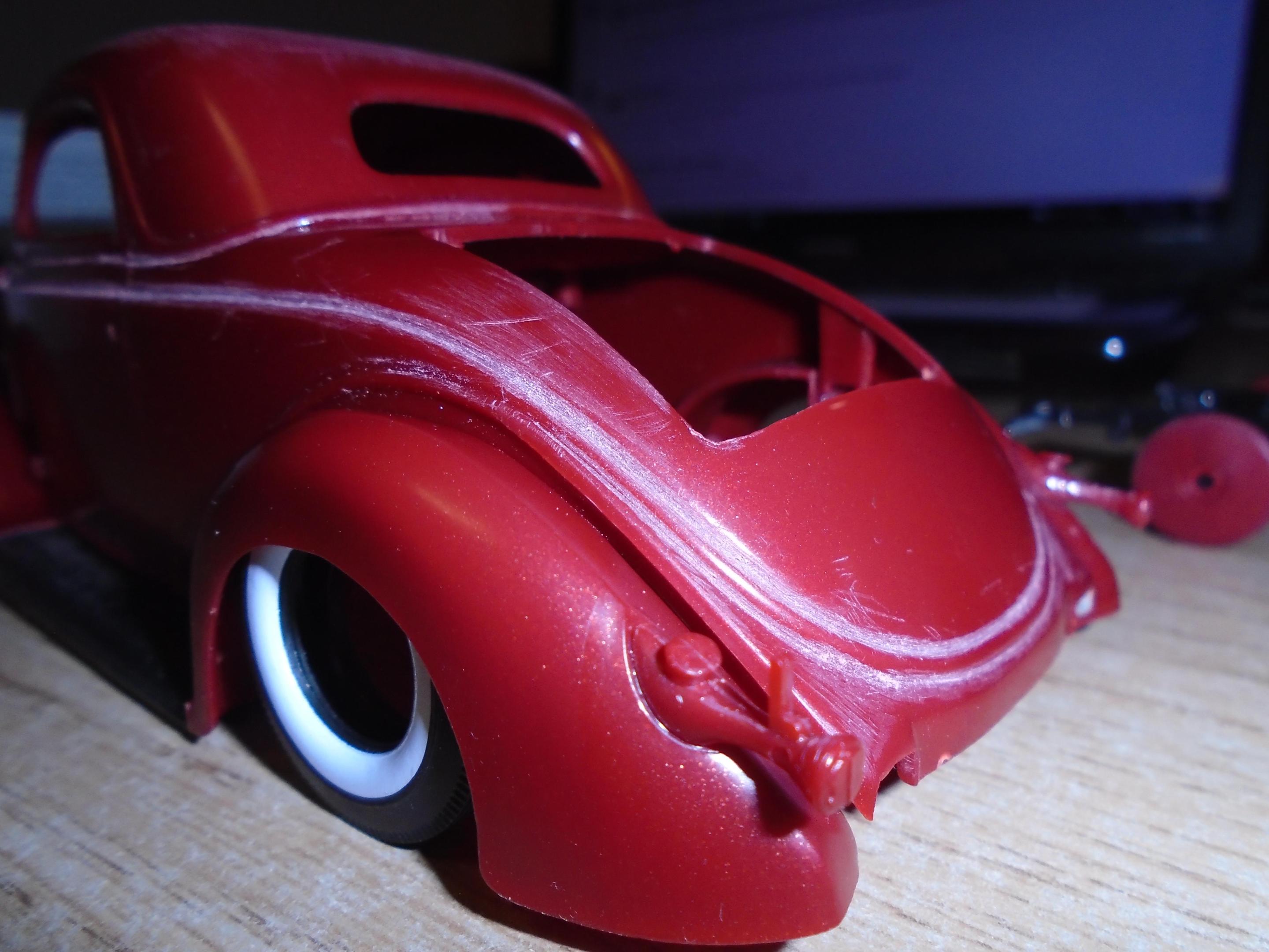 A few years ago I found one of the la salle grilles mastered by Rik Hoving of the custom car chronicle web site. It took another year to find the monogram 36 coupe in a rebuildable state and luckily most of it had been glued after paint so it mostly came apart easily apart from both axles and one running board. I dont think i can save the axles so i will replace them with parts from the revell 40 standard coupe kit and an front axle from the parts box in australia. So far I've mostly been adding the missing body lines to the rear of the body and glued the top on ready for a chop or maybe swapping the roof above the raingutters with the top from the 40. I'm hoping to keep it fairly period which is not usually my style but i really like the old 30s and 40s customs by westergard and ayilla so if you see something that wouldn't be period please point it out to me. The engine is from the 40 kit and will be mostly stock unless i can find my missing triple carb set. The wheels will be from the 40 with some flipper caps i found that fit the rims. I dont know what they are from but they are smaller than the ones in the revell 50 ford truck. the tyres are from an amt parts pak and are a little smaller than i wanted to use but they fit the rims so they'll have to do. I'm leaning towards a darker shade of paint and a solid colour but if the body work turns out nice enough i may use hok pearl. I'm going to use the 40 dash as its nicer than the 36 one but the rest of the interior will be from the 36 with possibly a 48 ford sterring wheel. if you have built a 36 please feel free to share it here, especially if its the monogram kit as i have only seen the amt kit built. a couple mock ups to start redoing the rear body lines. for this I am copying Mr Gunthmiller's technique he shared for interiors using files and scribers Now i am sure many of you that have built this kit will have been irritated by the body not sitting properly on the fenders which i have found is caused by this section inside the trunk. its just a little too long but the trunk fit is poor anyway so it will be glued shut I'm not sure why some of the text has underlined itself