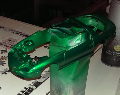 I've always liked this kit and it's a nice break for the extremely detailed kits I've been building lately. Not a very nice kit... tons of flash, bad fitment of parts,etc. But it will be fun! Test body for the green I'm going to use...