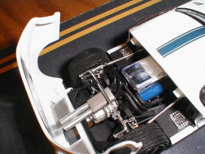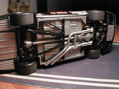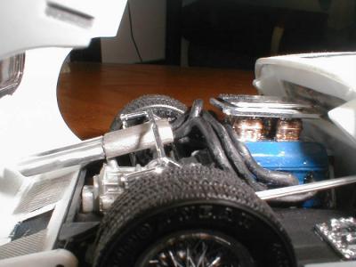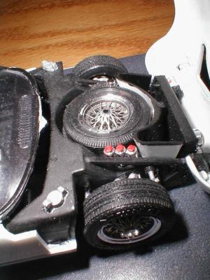 This is an old kit, aurora maybe. The rims were well done but the tires were dreadful just look at the spare so they got swapped. I cut out the back land added mesh along with aluminum tube for the exhaust. The was on of my earlier attempts with customization.