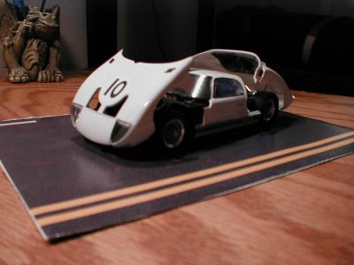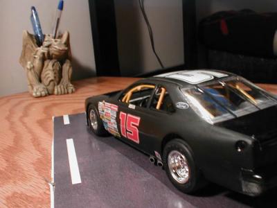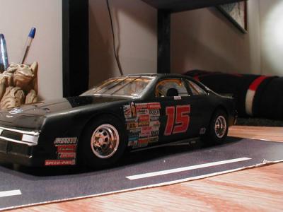 This is a nascar Ford Thunderbird racer I built, forget the kit make or the drive / year I would guess early 90's. I got it for almost nothing on a closeout bin, I went my own way on it, which was the plan from the start. If I recall correctly the whole point for me was to try the realistic tire scuffing I had read about. Enjoy.