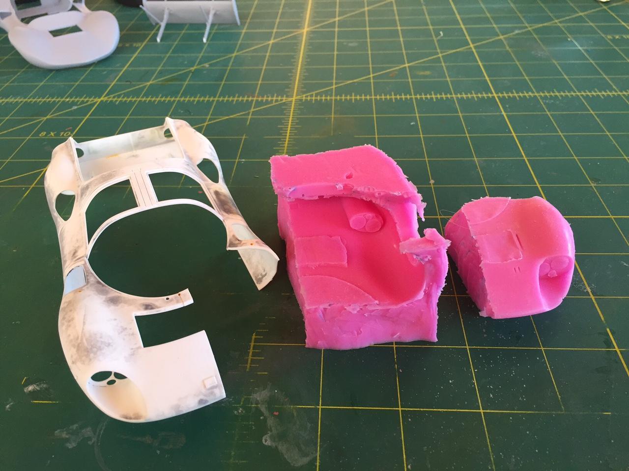So I've created the molds needed to repair the front end. I ran out of Alumilte silicone and got PinkySil. I prefer the harder stuff like what Alumilite has but the mold turned out perfect, no air bubbles etc...