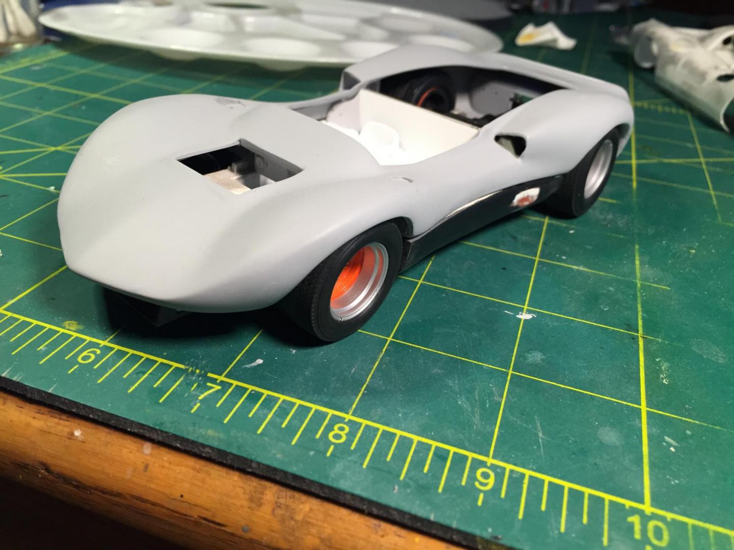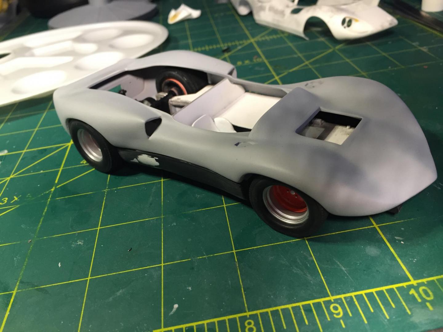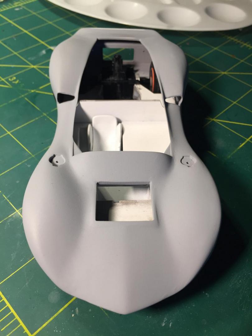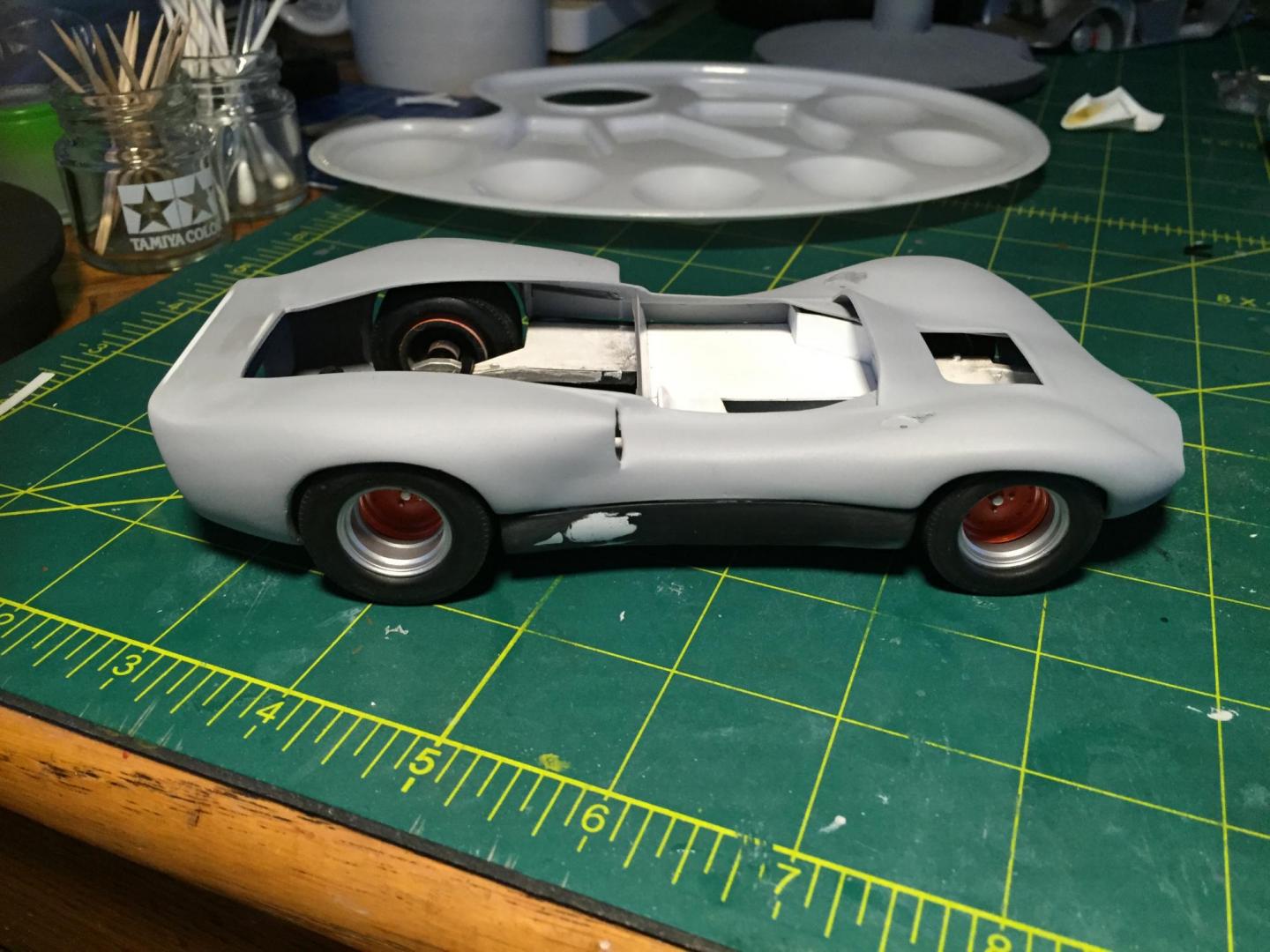 While I'm struggling with finishing my Dino 206 as I ran out of silicone to cast the front quater panel, I decided to work on the Chap. What follows is several and I mean several hours of wet/dry sanding several thin layers of Tamiya Putty as a base followed by several thin layers of Bondo Spot Putty. I used Perfect Plastic Putty as a filler due to its water base being non destructive to plastic. It sands like a$$ FYI so best to apply with wet fingers. It's still very begining stage but I like the progress. The body is where I like it. I'll prolly d engine work this weekend.
