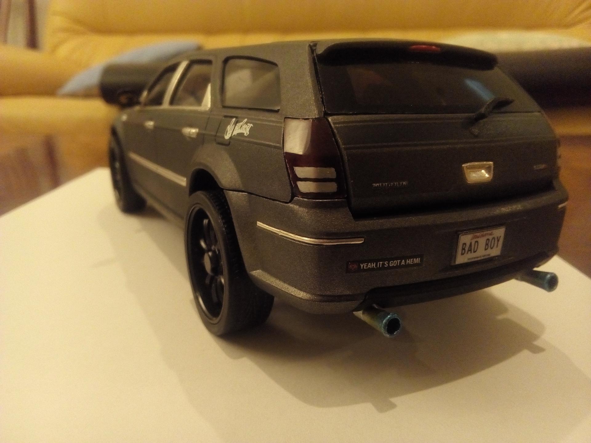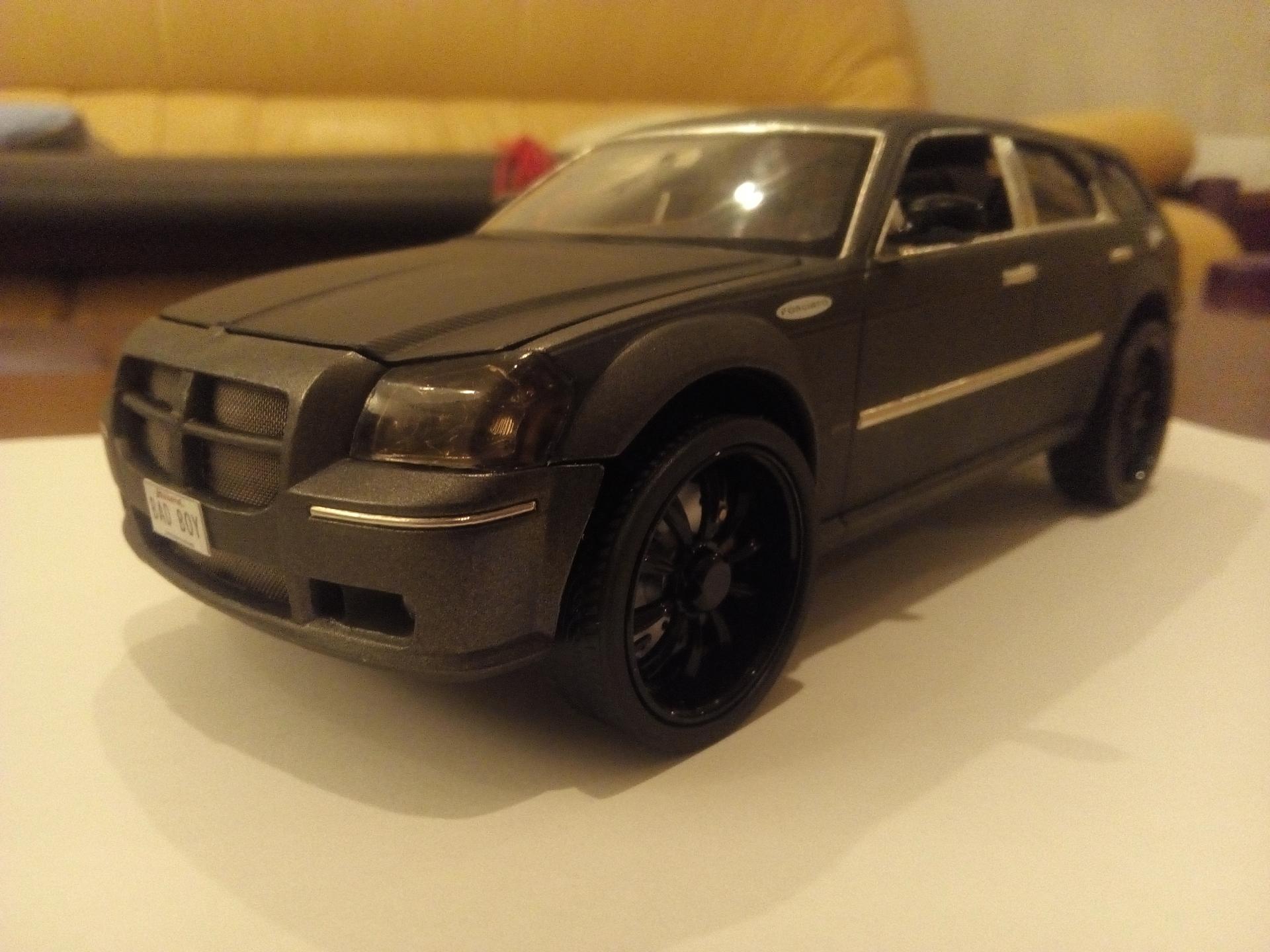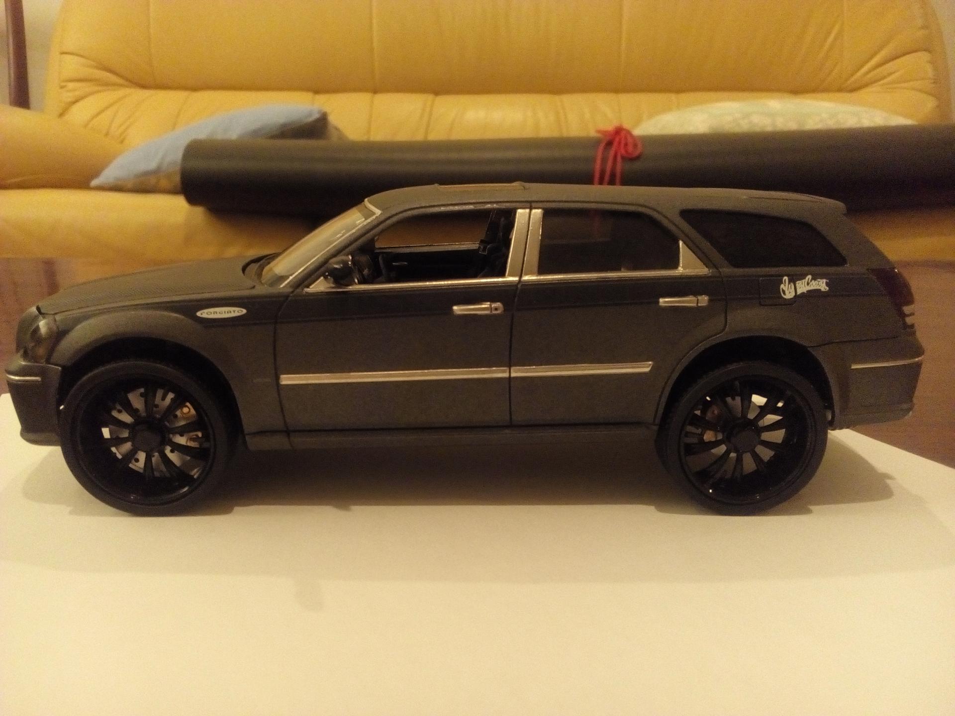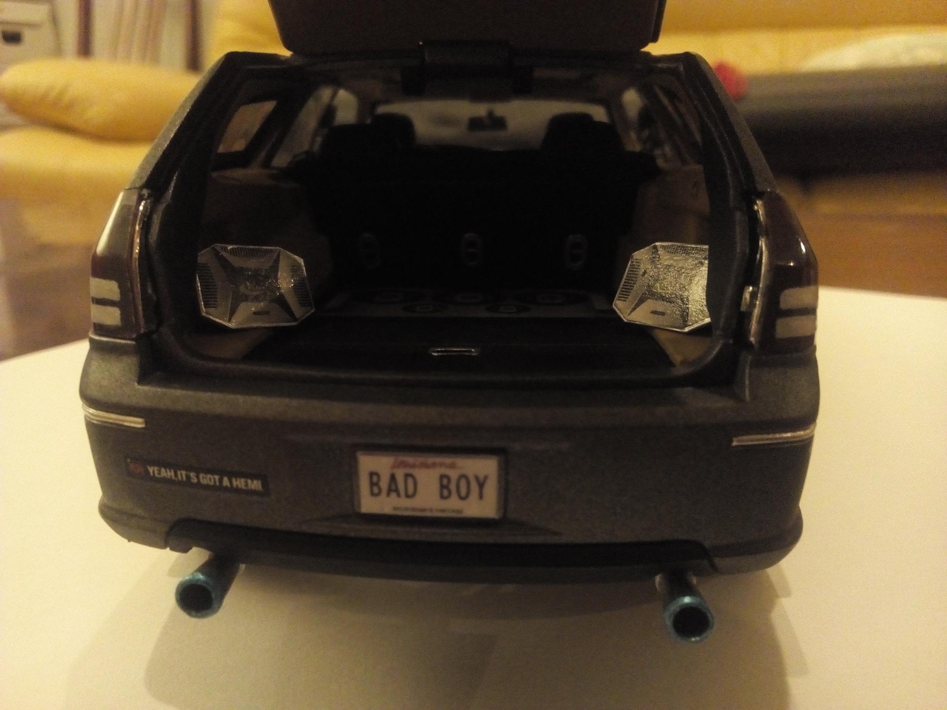 9. Hey there, glad it's finally done. Fitting was surprisingly good considering it's revell. Thought I would have issues with the windshield fitting but did not. My goal was to fit those oversized rims but not make it look like a donk. Mods include Fitted oversized rims Lifted suspension and whole car in order to fit the rims Matte graphite grey paintjob Bigger brake discs Rear subwoofer/speakers Chrome trim by BMF Tinted head/tail lights Some decals here and there Carbon Fiber Hood Meshed grille Exhaust tips with heat stain (my favourite part of the car aside from those rims) That's about it. Thanks for checking it out.
