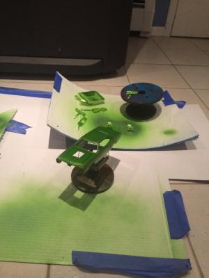 Just showing that i am making some progress. Got the body, engine bay and interior painted. The chassis and suspension are currently sitting and I'm waiting for the glue to dry. Here's a quick pick of the painting I did over the weekend.