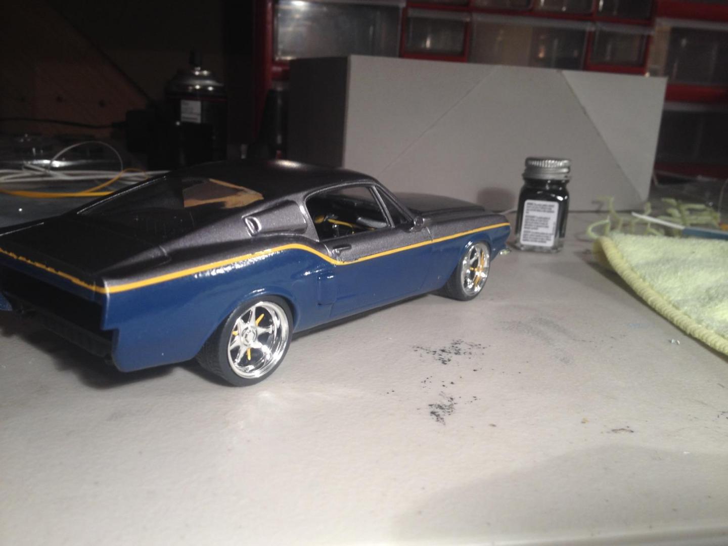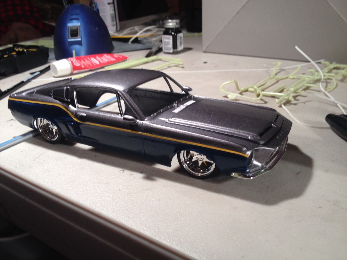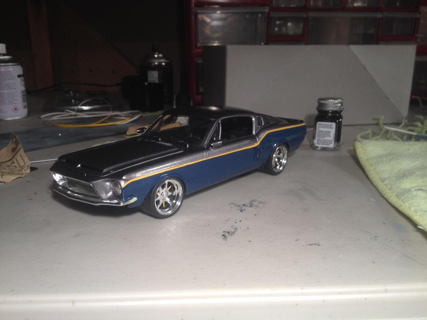 I don't post on here much but I've been working on a 1968 Shelby GT500 kit that I thought I would share. I've attached a pic of the body after I painted it, no clear on it yet but I think its turning out okay. I left the front and rear bumpers on the coffee table and the dog decided to chew on them so they are pretty much demolished. I thought that perhaps I would build a front and rear bumper that would give it a road race/ pro touring design, so it has started to move towards that route. Its really my first time scratch building bumpers so I'm sure i'll be posting questions about that soon and if anyone can post some similar style bumpers they've made for some inspiration I'd appreciate it! I will get some more pictures tomorrow!