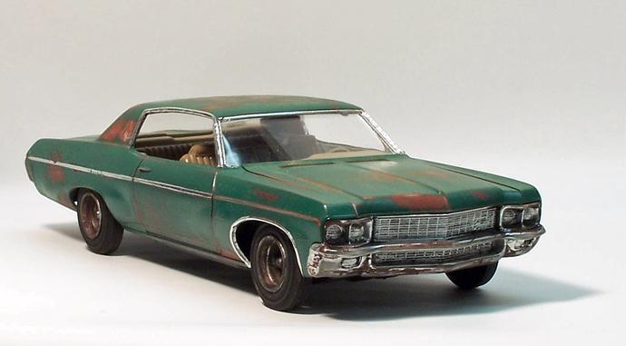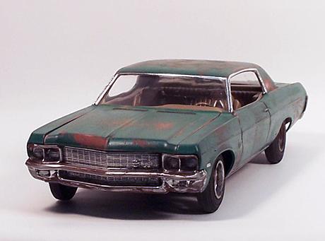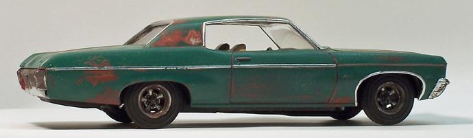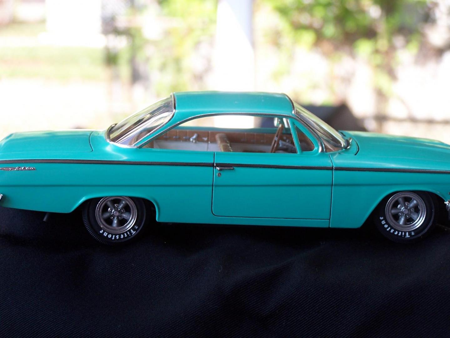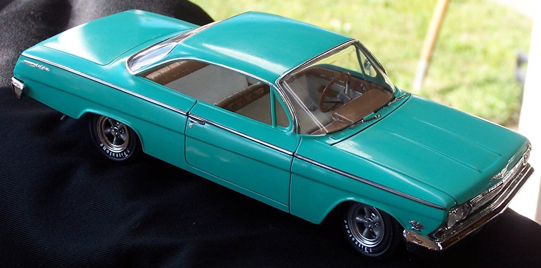 hey everyone sorry if i offend any impala lovers out there with this one basically just wanted to show results i got useing the cheap acrylic hobby paints , the procedure that work for me was useing the medium for acrylics ,shot the color,sanded it down with 2400 to get bad spots rectified .after satisfied then i shot about 6 coats of the duplicolor, then sanded clear coat with 3200 ,than wax with turle wax, ( i my self am very happy with results) the rest of car is also all acrylics, the only smell i had to deal with was the duplicolor , but no where near as bad as before with having to clean up with laq thinners or all the other mess, just water cleanup from here on out baby attached is the stuff i am useing and the chrome on side is alcad and of coarse bare metal foil on windows