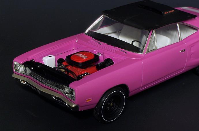 Hey guys here is the super bee that me and granddaughter started , I told her to pick a color ,this is what she picked and she wasn't budging so I let her spray it her first time ever spraying with air brush,boy was that funny we were both laughing so hard it took her 3 times but it worked out great(I use the cheap craft paints on all bodies so we washed it off twice and third time was perfect ,she is only 10 yrs old),then she wanted to clear it but I said no cause it was some nasty chemicals and didn't want her exposed to it she didn't like it but oh well I WON that debate,( was duplicolor acrylic enamel clear in can)I know call me paranoid,then she says to ME well YOU spray it,quiclky reminded her who the adult was,but none the less she was happy she got to spray her first car,i know nothing is correct as far as being accurate representation of said vehicle ,but it is going on her shelf,,the 57 is also painted with cheap craft pain don't know color because it was left over from something else,the model was a basket case ,someone sanded most of the drip rails off , some with window molding didn't have much left to cover,suspension parts were missing ,motor parts missing ,so it pretty much curb side.and she also sprayed the interior of cornet,she didn't want to put down the air brush