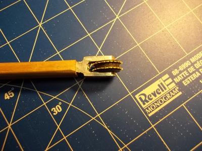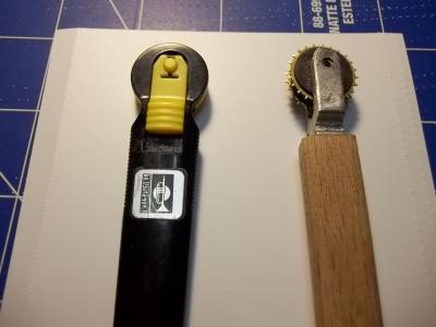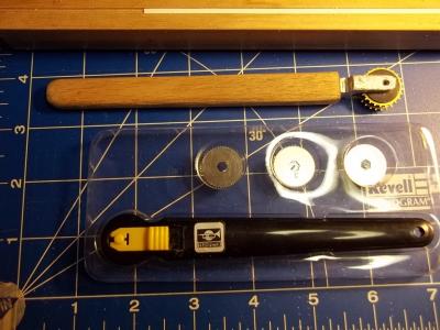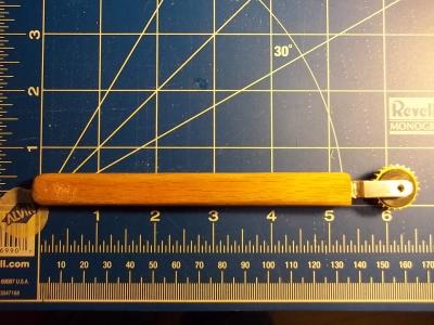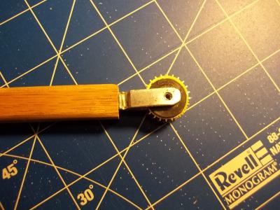 I dove into scratch model building as my solution to the limited choice of trailer model kits in 1/25 and the scarcity of pup kits. I'm most interested in the 60's thru 80's era and the popular style of trailer construction was the exterior post. Adding rivet details became the key to my plan to build a fleet/fleets of trailers. The decal type of rivet details may have worked but I didn't think I could crank out the numbers of of pieces that I would need and do it well. Getting the rivets right was actually where I started. I wanted to model the exterior post trailers and the posts were a real challenge. The posts needed to be essentially a double row of rivets. I tried a commercially made single row rivet tool but the spacing and size were too far off for 1/25 scale and making the 2 rows consistently with the single row tool was impossible. So I ended up making a double row tool to do the posts and I found that I could use just one side of the tool to make single rows of rivets for the panels. The double row rivet tool is made from things that I had on hand but to those who are inclined could come up with a similar tool. The frame of the tool is half of an aluminum turn buckle with 10/24 (I think) thread. The handle is a strip of oak that I drilled and tapped for the screw to attach to the turn buckle half. The rivet detail wheels are brass gears from an old mechanical timer. I filed off every other tooth to get the spacing that I wanted. I used a tiny square rat tail file. Using these gears made this tool possible for me since I couldn't imagine any simpler way of making the cutting wheels. I drilled across the turnbuckle half, (do this before cutting it or use a spacer to prevent flexing when drilling) to provide an axle for the gears. The axle was a 1/8” roll pin. Finally I turned out a spacer and washers from HDPE to align the gear wheels at the proper spacing for the exterior posts. (you could use nylon bushings and/or washers available at most hardware stores for the same purpose) So far the tool has held up well. Using the tool. There was a long learning curve to get consistently well formed rivet heads, so don't get discouraged! I found that making the rivets with the home made tool directly on a cutting mat caused the teeth of the tool to puncture the plastic. Adding 5 or 6 sheets of printer paper as a cushion solved this and resulted in better formed heads. The guide block that I used was made from hard maple. I found that rubbing a candle along the edge of the wood first helped the tool to track better. The bare wood guide alone didn't hold the plastic firmly in place so I used a scrap of yoga mat glued to the bottom. I've been able to form rivets in .010 styrene for the backs of the exterior posts and .010 and .020 styrene for panel details. Again there was a long learning curve for me to get consistent results. If you are a scratch builder or want to add variety to your models try adding some rivet details.