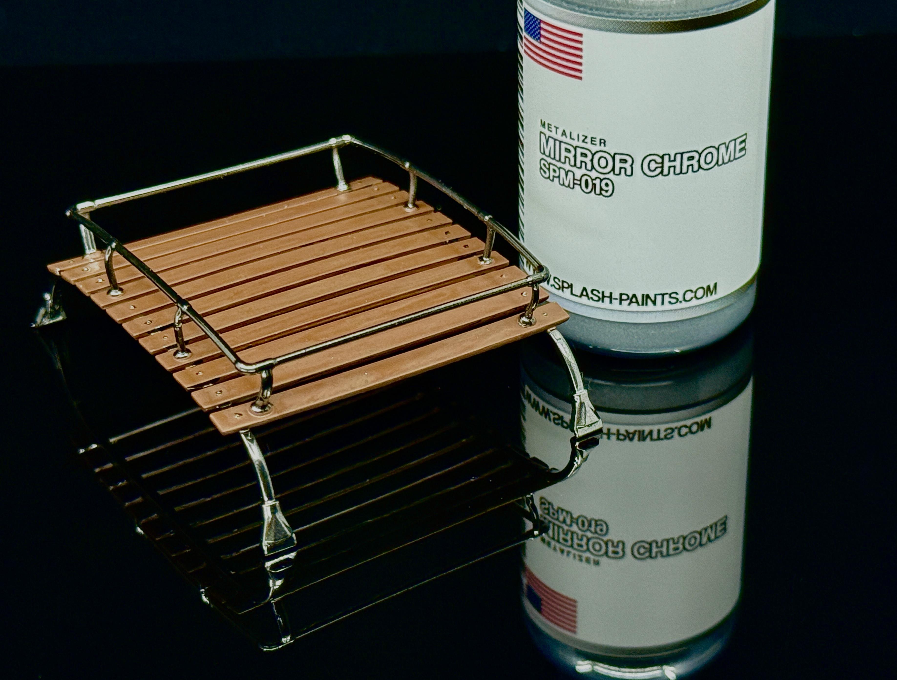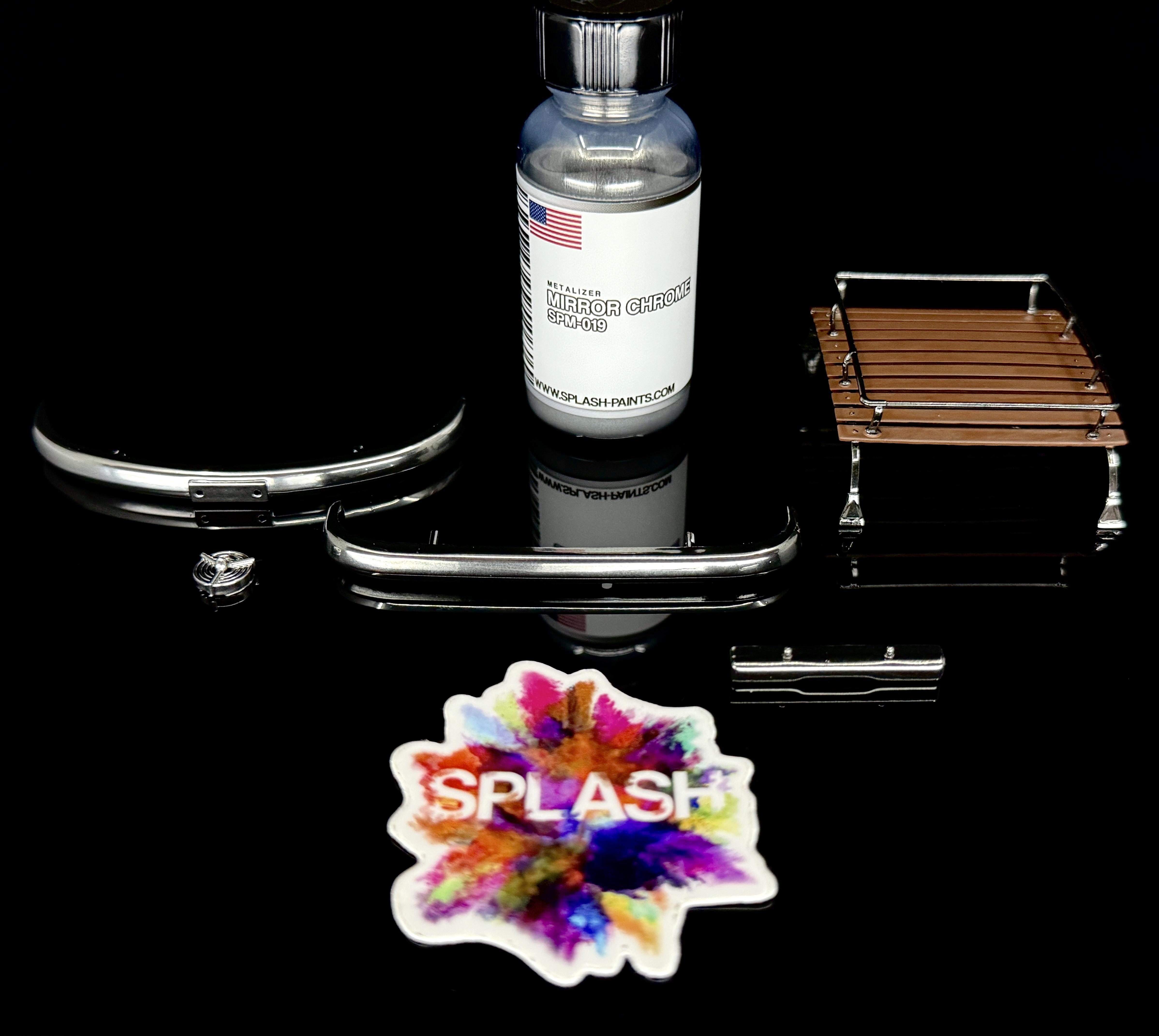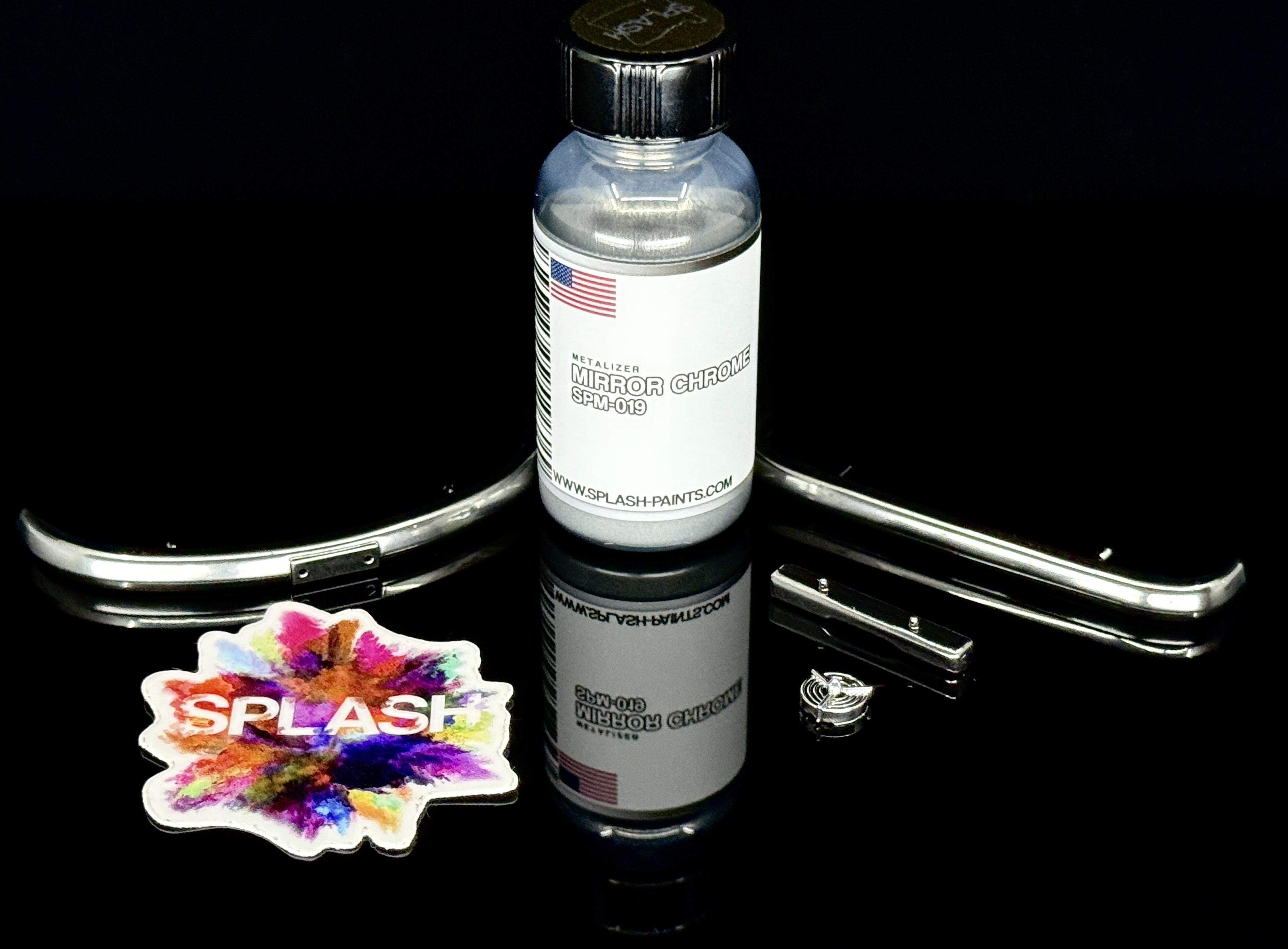 I had the chance to use some of Splash Paints new Mirror Chrome Metalizer for an upcoming build. I have to say, I have sprayed a lot of SpazStix and Alclad chrome and this so far tops them both. With Splash’s new Mirror Chrome, you don’t have to worry about smudging, printing, or the chrome wiping off with too much handling. Also, when using BSI Gold, it doesn’t remove the chrome color to expose the black base underneath. It is sprayed the same way that SpazStix or Alclad is sprayed, over a 2k Gloss Black base then shot at 15psi in overlapping light coats. This is definitely a paint I would recommend checking out if you’re looking to add some nice robust chrome paint to your arsenal.