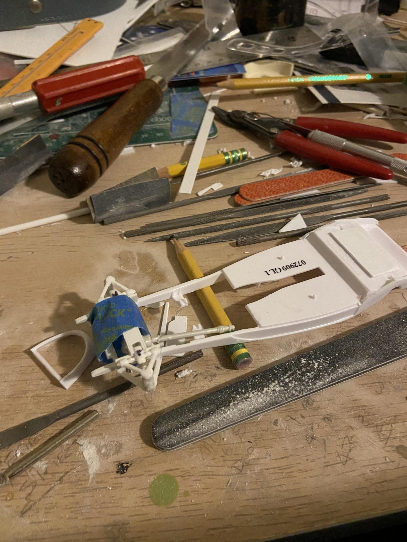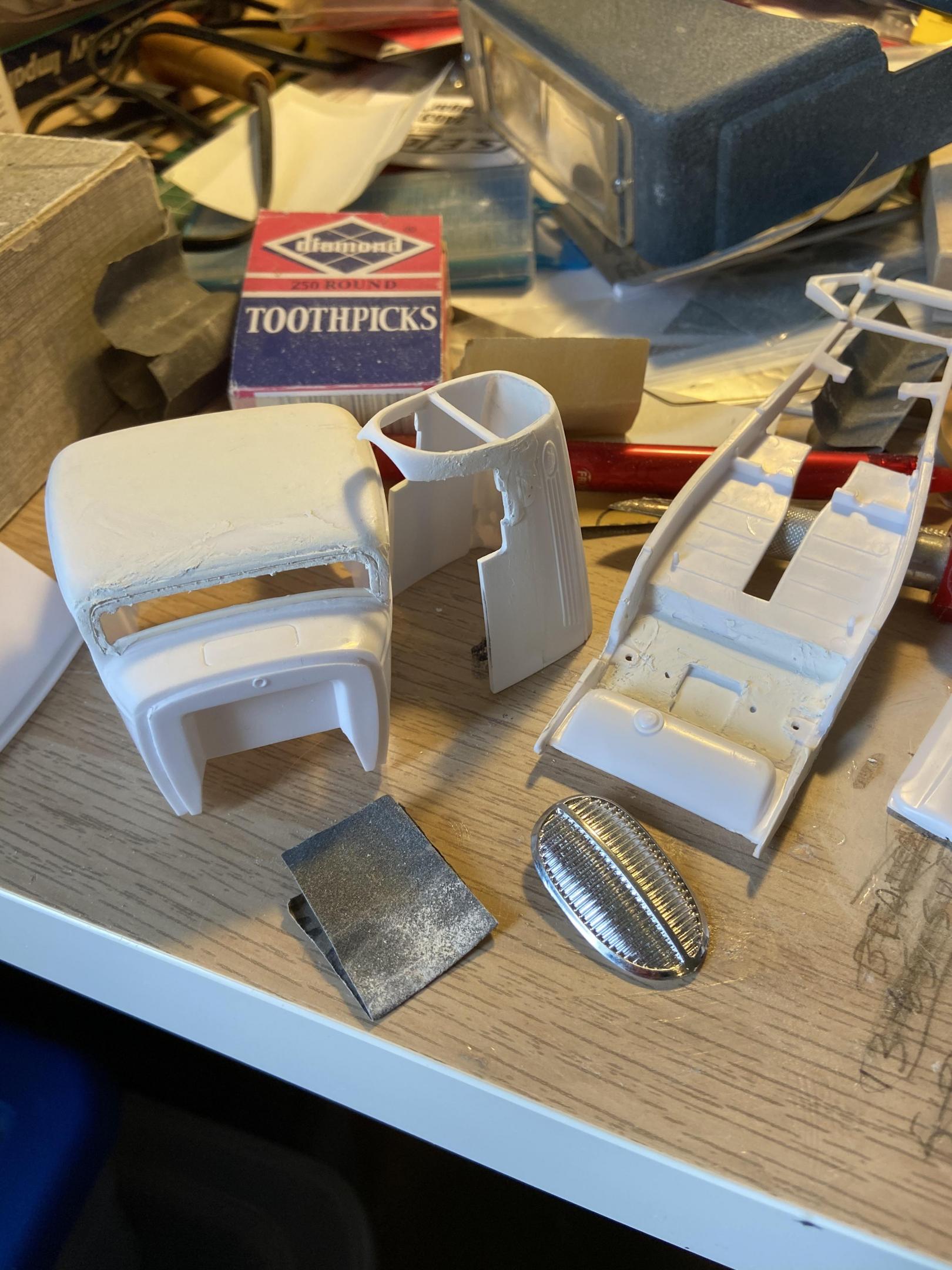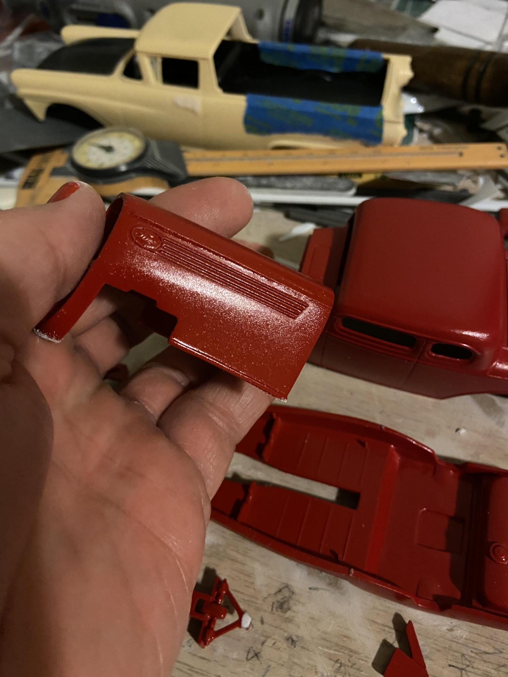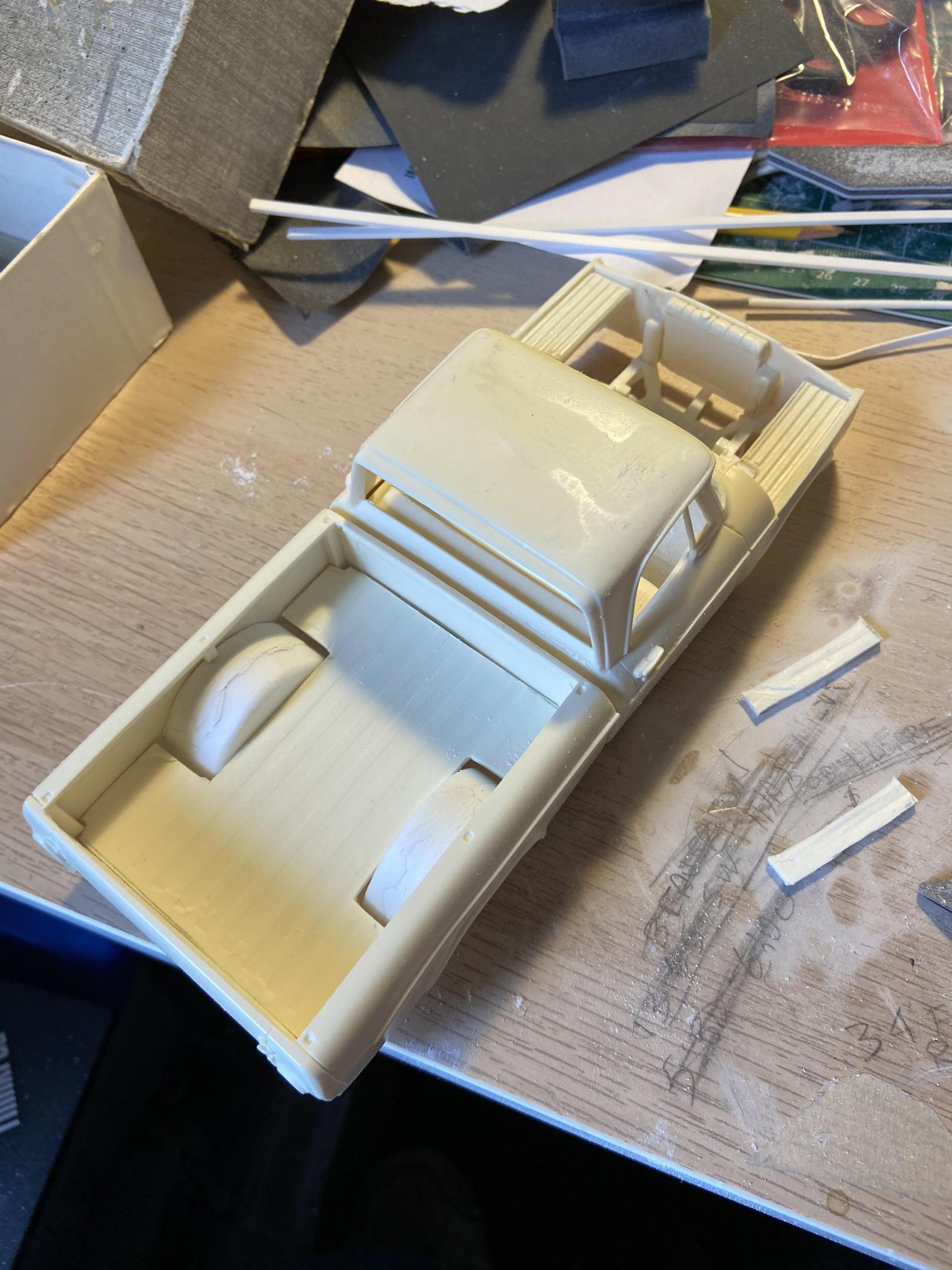 20. I too like the direction you’re going with this. I also have an AMT new tool 57 Bel Air going and I got curious one night, so I grafted in a 58 Plymouth Belvedere roof on mine. Please keep your project going.