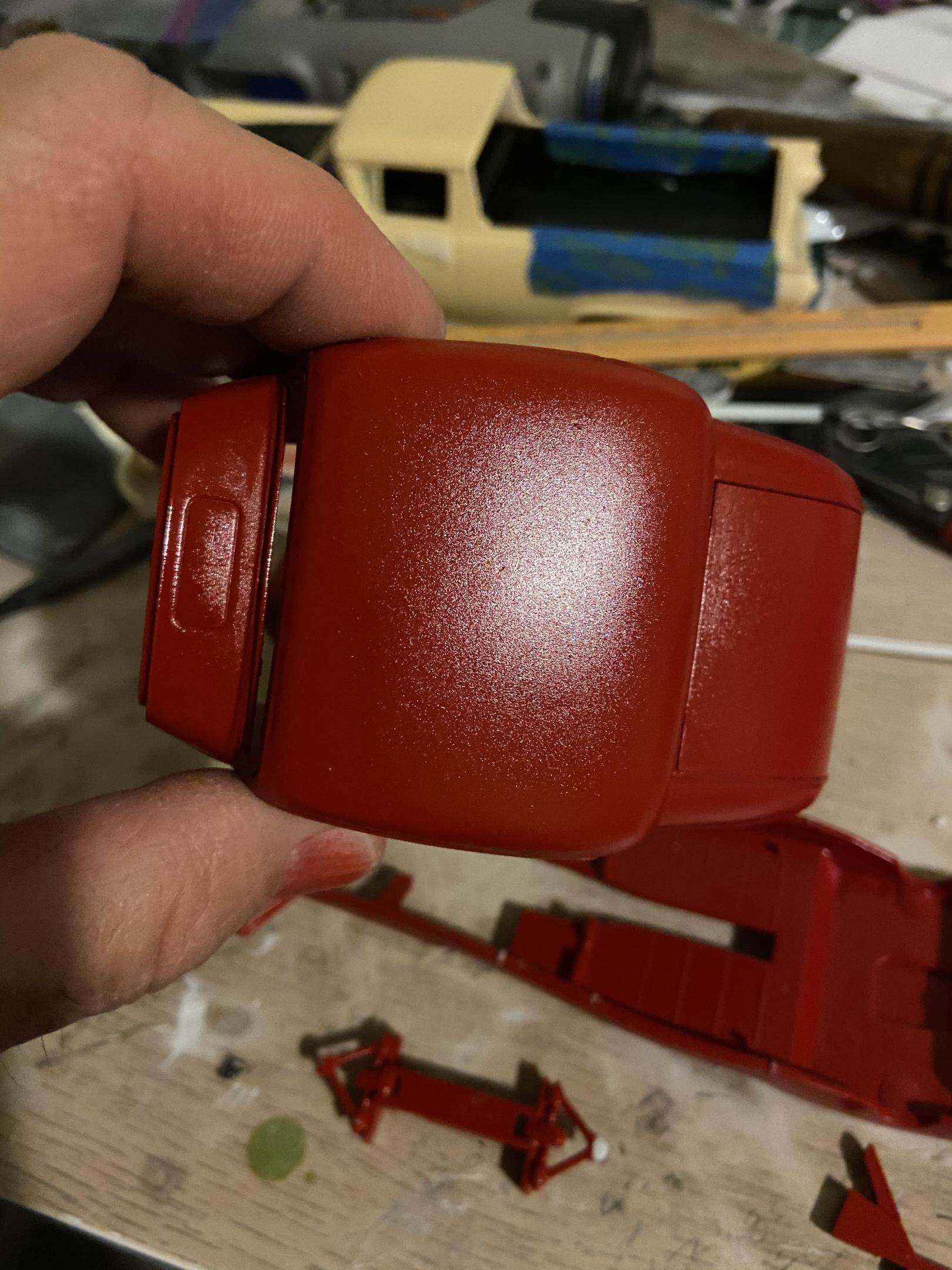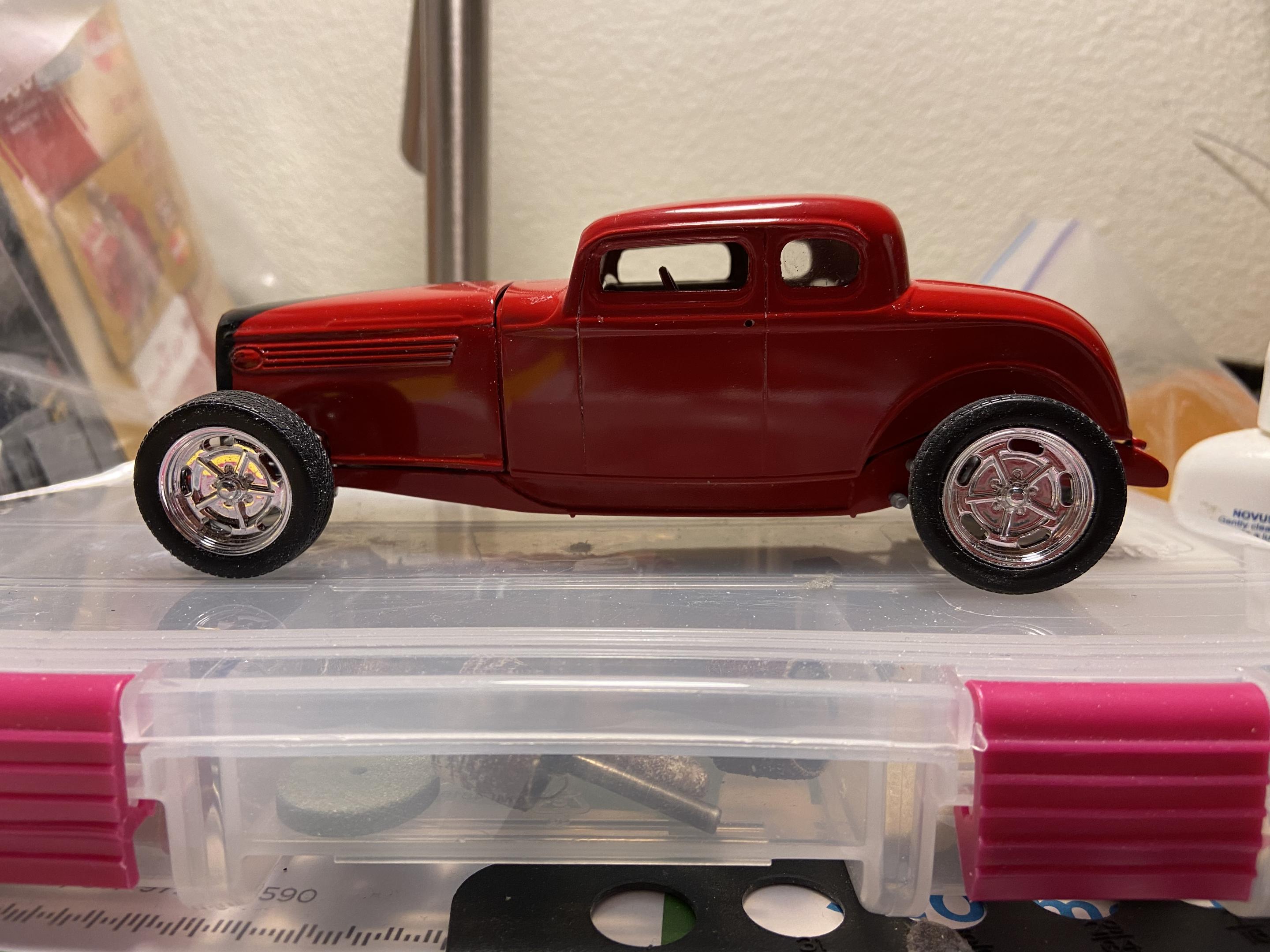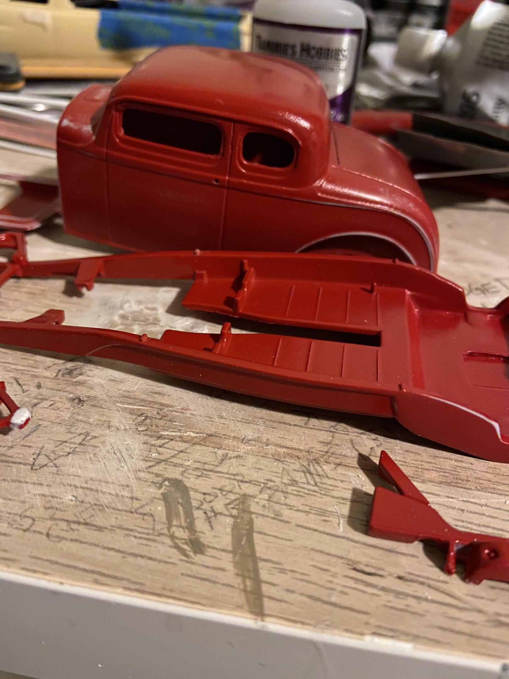 10. Well I got my first color on the 32 Tamiya Italian Red over Duplicolor grey primer and after two coats of the color I had to do a bit of color sanding this evening. Not sure what to do, I might try a third or fourth coats. Oh well, keep smiling everyone.