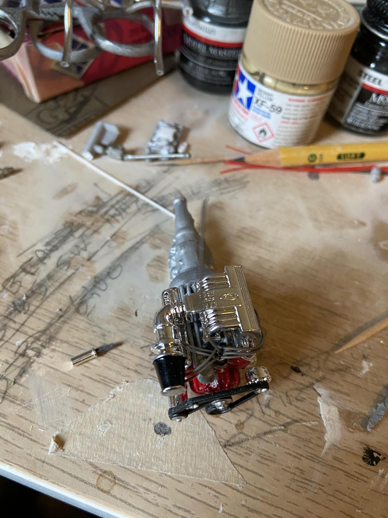 8. 32 Ford AWD Update: Well how things change in 24 hours. I couldn’t get the Latham blower to sit right, after all my trickery it would not sit right - interference with the distributor even after scratch building a remote drive (yes they do exist). After a bit of messing around I looked in the Revell 32 Ford box and I found the intake and rest of the EFI setup. Hmmm - it doesn’t look too bad. Yup I’ll keep it. Hoping that y’all weekend went well. Cheers