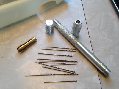 I got a new aluminum pin vise and 12 bits today from hobbylobby. I used the 40% of code for the first time. $11.00ish. It's much nice than the heavy steel one I had and I like the collet better.