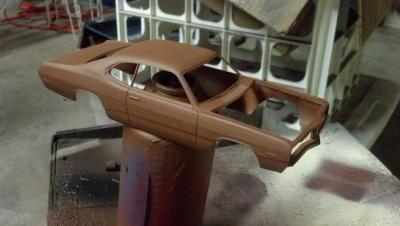 Well worked on it quite a bit today motor is in and engine bay is nearing completion what do you guys think about color not sure if its what I was going for but its starting to grow on me? Also body is in primer.
