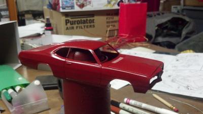 I know this isn't the best pic but I couldn't wait to post it and haven't had time for fancy white background pics its an older kit probably mid 90s I built it pretty much stock out of the box just added details its painted with model master J5 sublime green I liked it OK it was my first time using it it could use a but more clear for a fancy finish but it looks factoy and that's what I was going for.