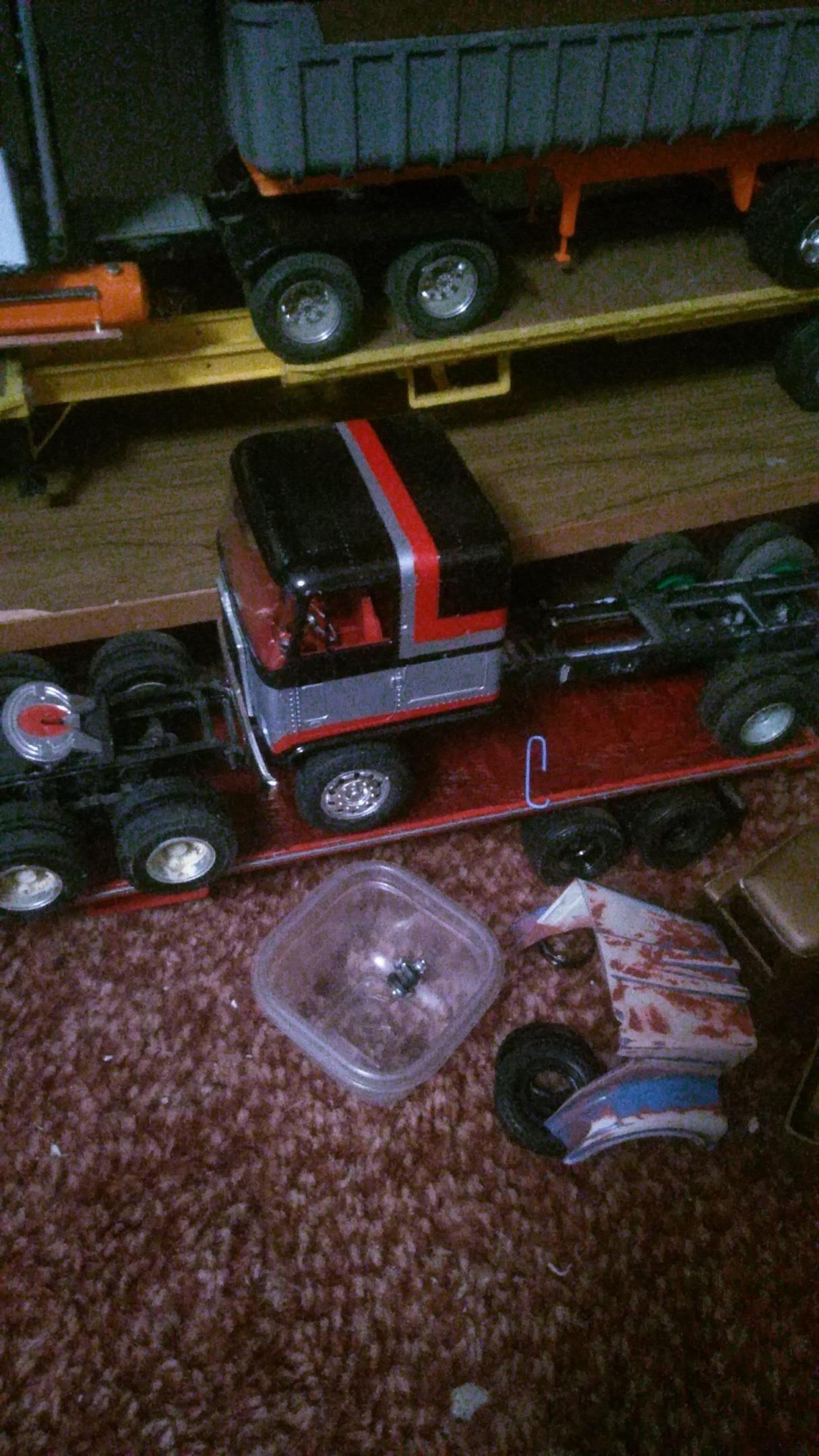 Being built alongside my Dodge, and several other resin trucks like A Marmon cabover, and a Diamond Reo cabover, is this Hayes. This one is supposed to look like an old retired truck. It's been through a lot and even had a door replaced at some point it It's life. The chassis is from an AMT Road Boss, the rims and tires are from a GMC Astro kit. It's not easy to see in the pics but I did make them look rusty.