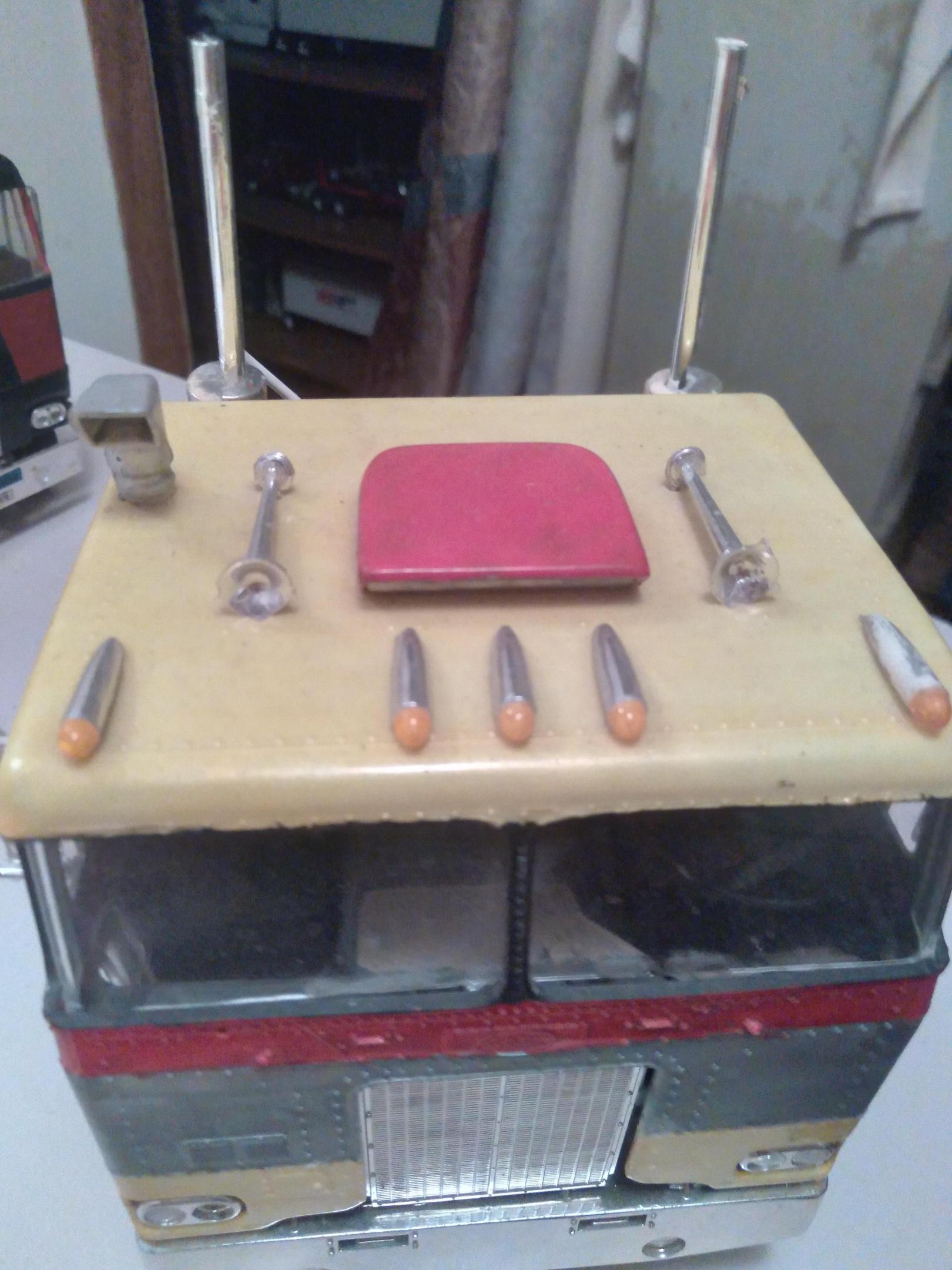 Mostly the chrome for this International right now. I need the correct mirrors, grab handles, door handles, lights on top of the cab, one air horn, and one rear wheel. -