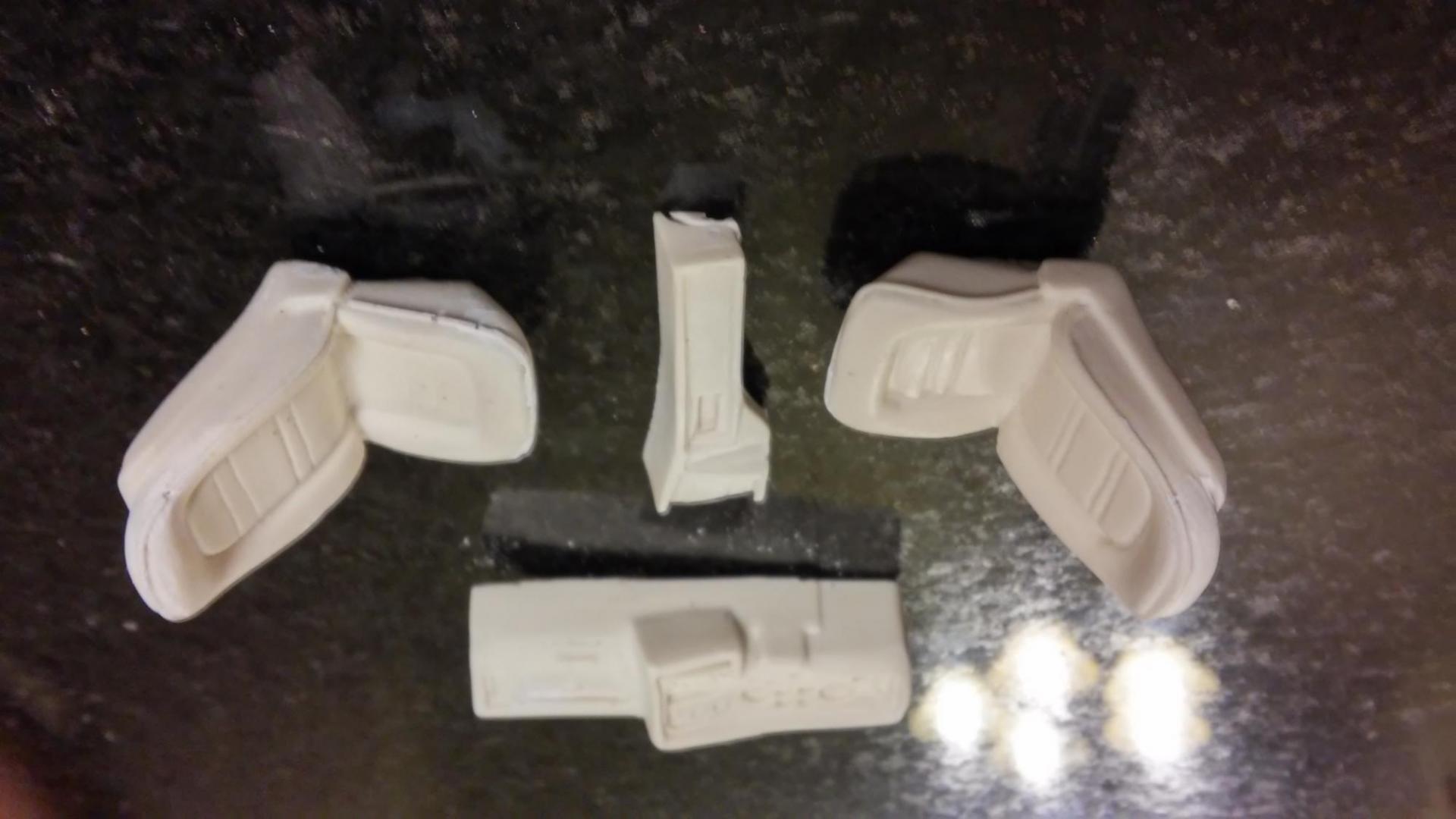 After a few months doing other things like finishing a 77 LeMans sedan and beginning a 76 Grand Prix to cast, I spent a few hours this week on my Grand Am. I started the body mods with parts from a 1980 z28 and some sheet styrene. I also started doing correct seats for the 74/75 Grand Am resins. I did the "horsecollar" seats for the 73 and a rear seat tub for the 73 but had never done the correct seats for the 74 and 75. I'm also doing a bench seat interior for the sedan.