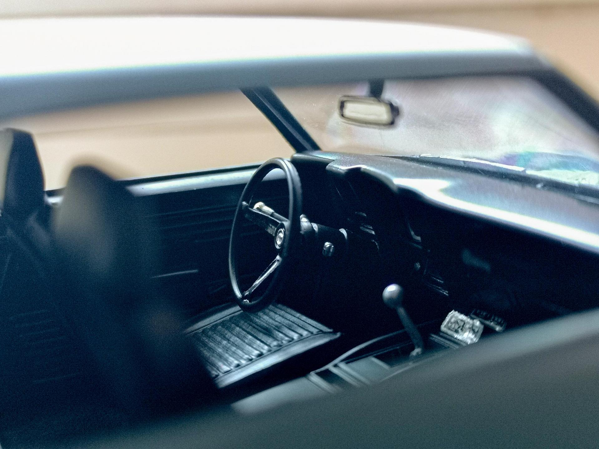 Hi All, here's another Ford I just finished up, my second of 2020. Started in January I wanted to go for a very mild custom look, and a unique exterior/interior combination. This Starliner body style is one of Ford's most beautiful design's, and already looks so custom in my eyes it didn't need any alterations, just a great color to make it pop. Living in Munich Germany just down the road from BMW's headquarters I see a fair amount of M3's wearing a crazy color called Austin Yellow, I figured its the perfect color for a 60's car. I didn't want to do the usual white tuck and roll interior, so I ended up finding inspiration in the Lamborghini Muira. Yellow Muira's came with a blue leather interior, or at least it was an option, so I thought that was a nice period reference for my blue Interior. Exterior paint is Zero Paint's BMW Austin Yellow w/ 2k Clear, and interior is Tamiya Blue X-4. I didn't like the steering wheel the kit came with so I swapped it for a '72 Chevy Truck wheel. Wheel and tire combo are actually from a 1964 Chevrolet Impala SS, I thought that fit the mild custom theme for the car. I don't show the engine here because I didn't use the engine from this kit, I just threw in a V8 I had around saving this kits engine for something else down the road. This was another fun build, but the biggest hurdle to get over was the sheer amount of chrome trim that needed to be covered in BMF. Not to mention the mistake of leaving some masking tape for 2 months on the rear chrome panel, which peeled all of the chrome off. I stripped the rear panel and re-did it using Alclad Chrome. I hope you all enjoy the photos, cheers!