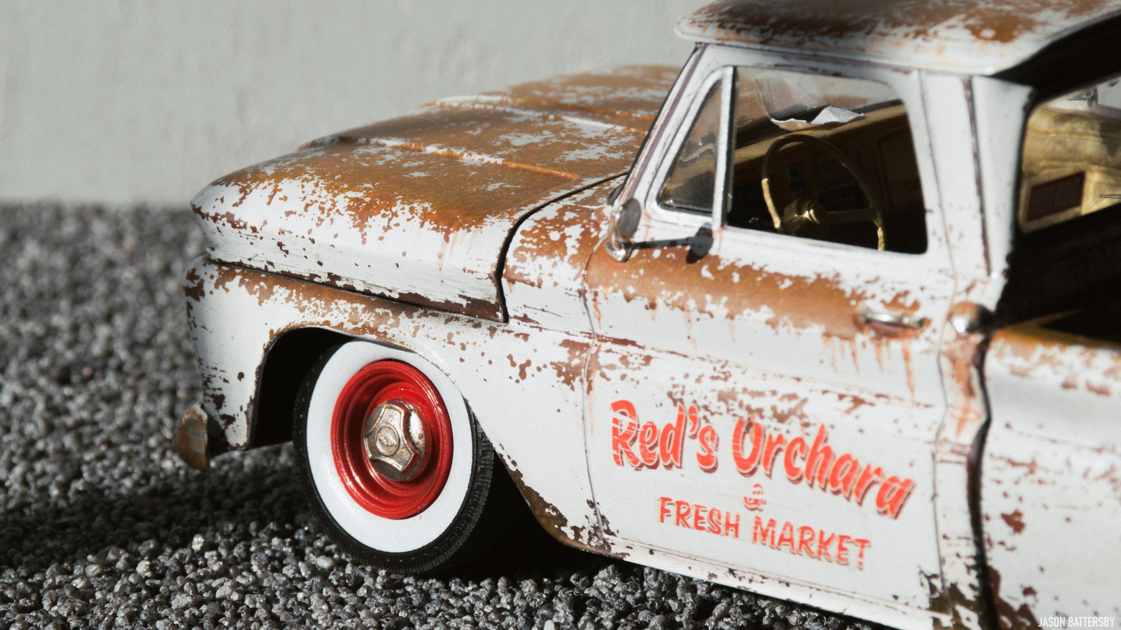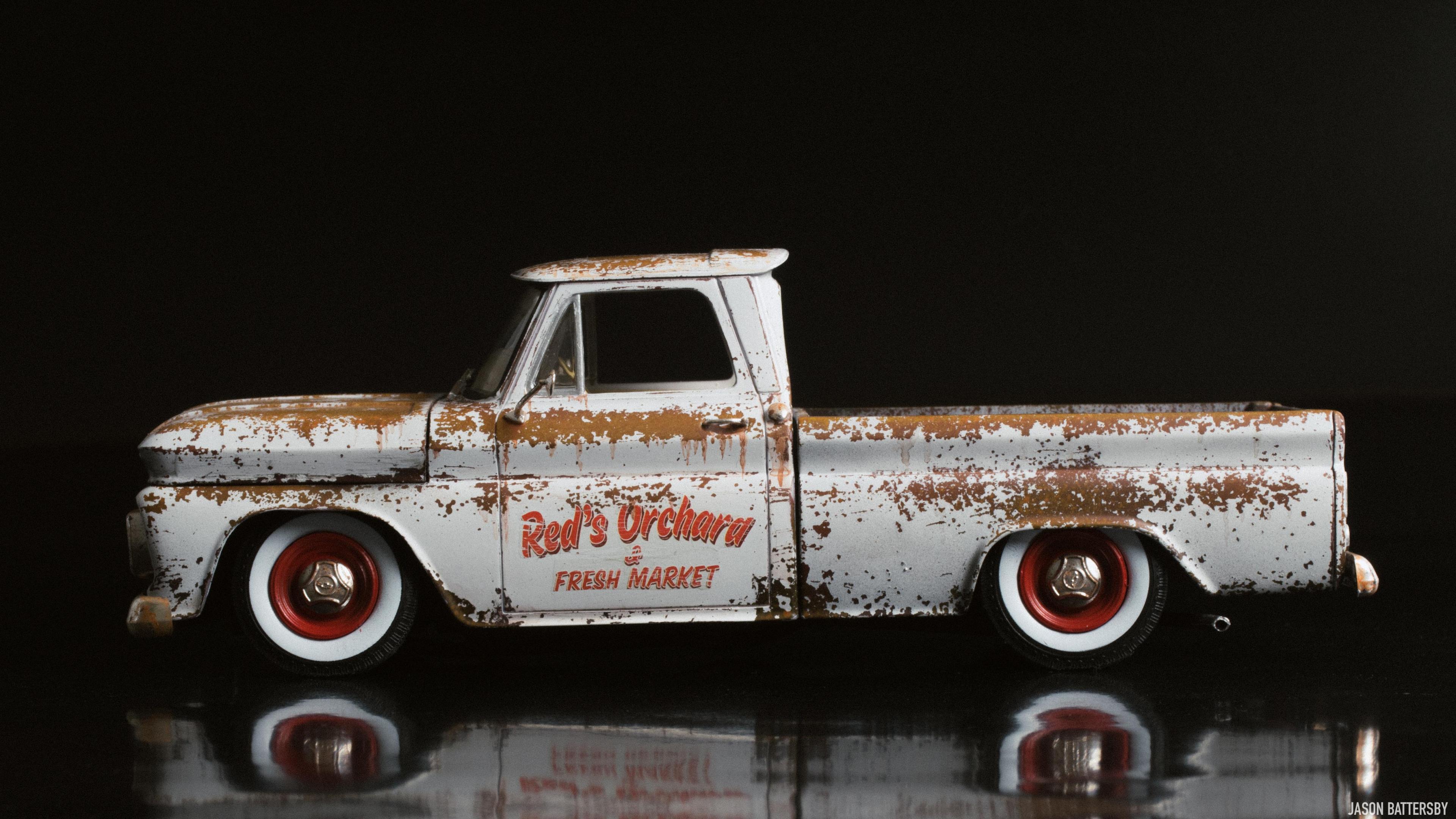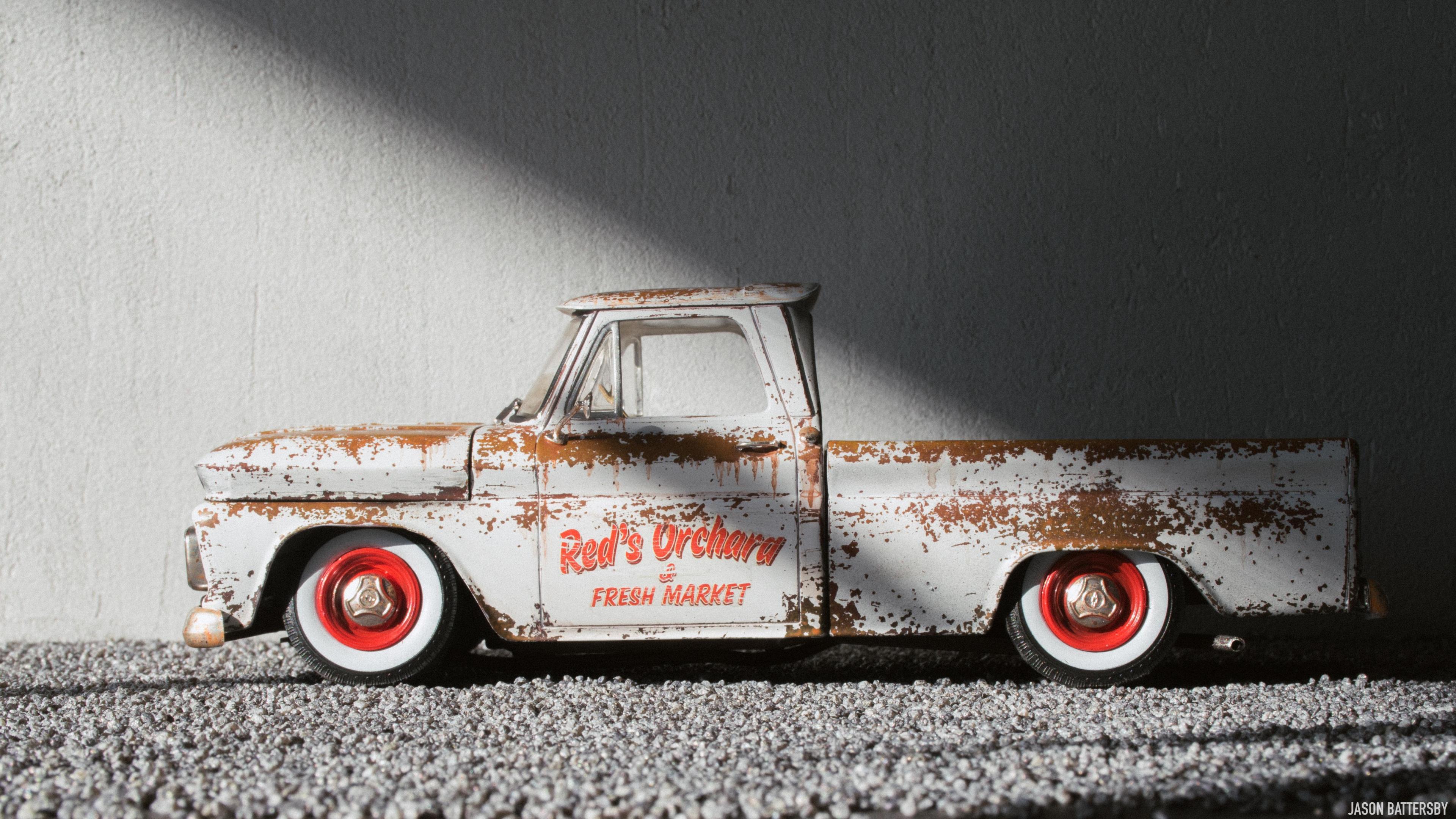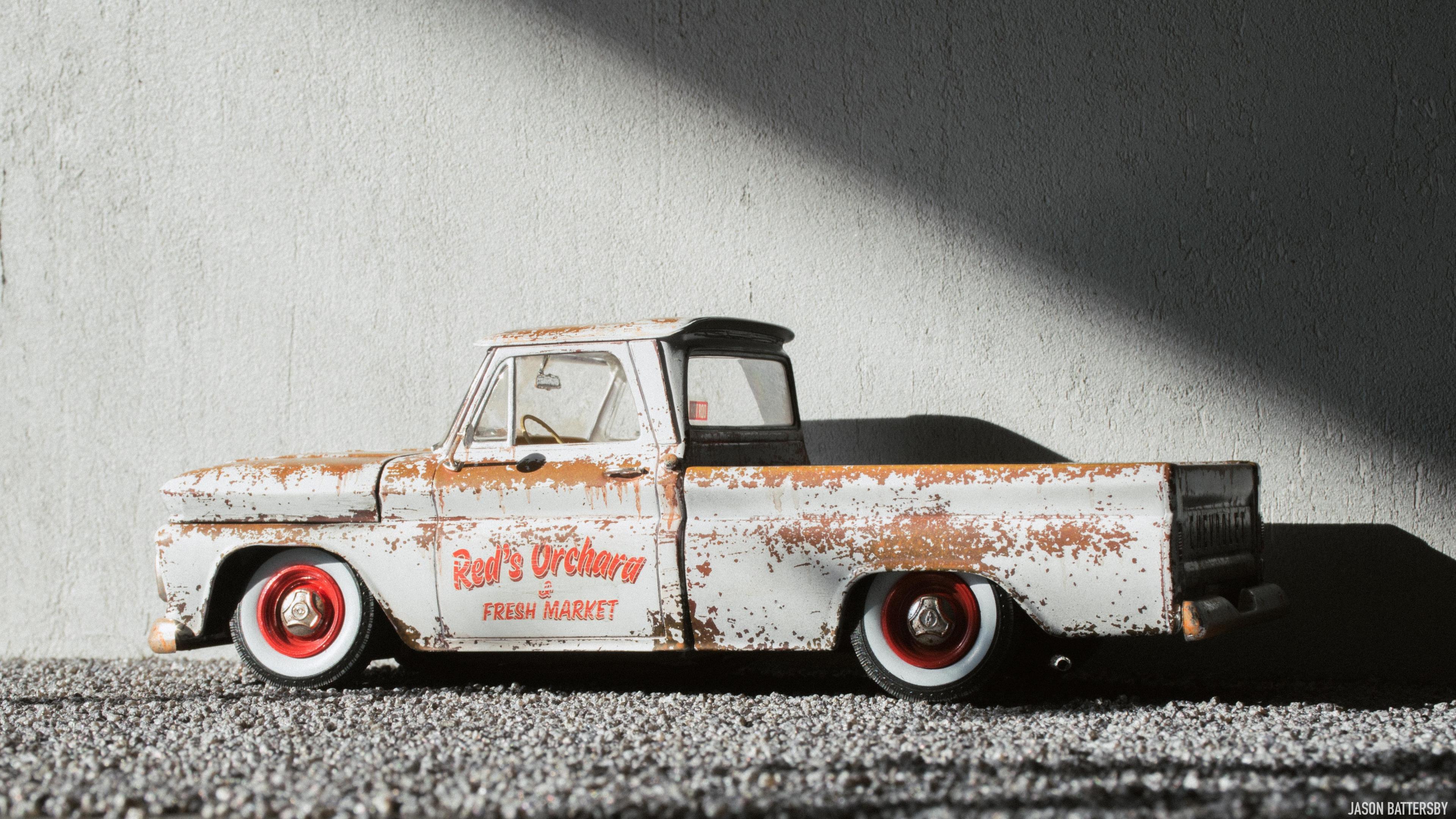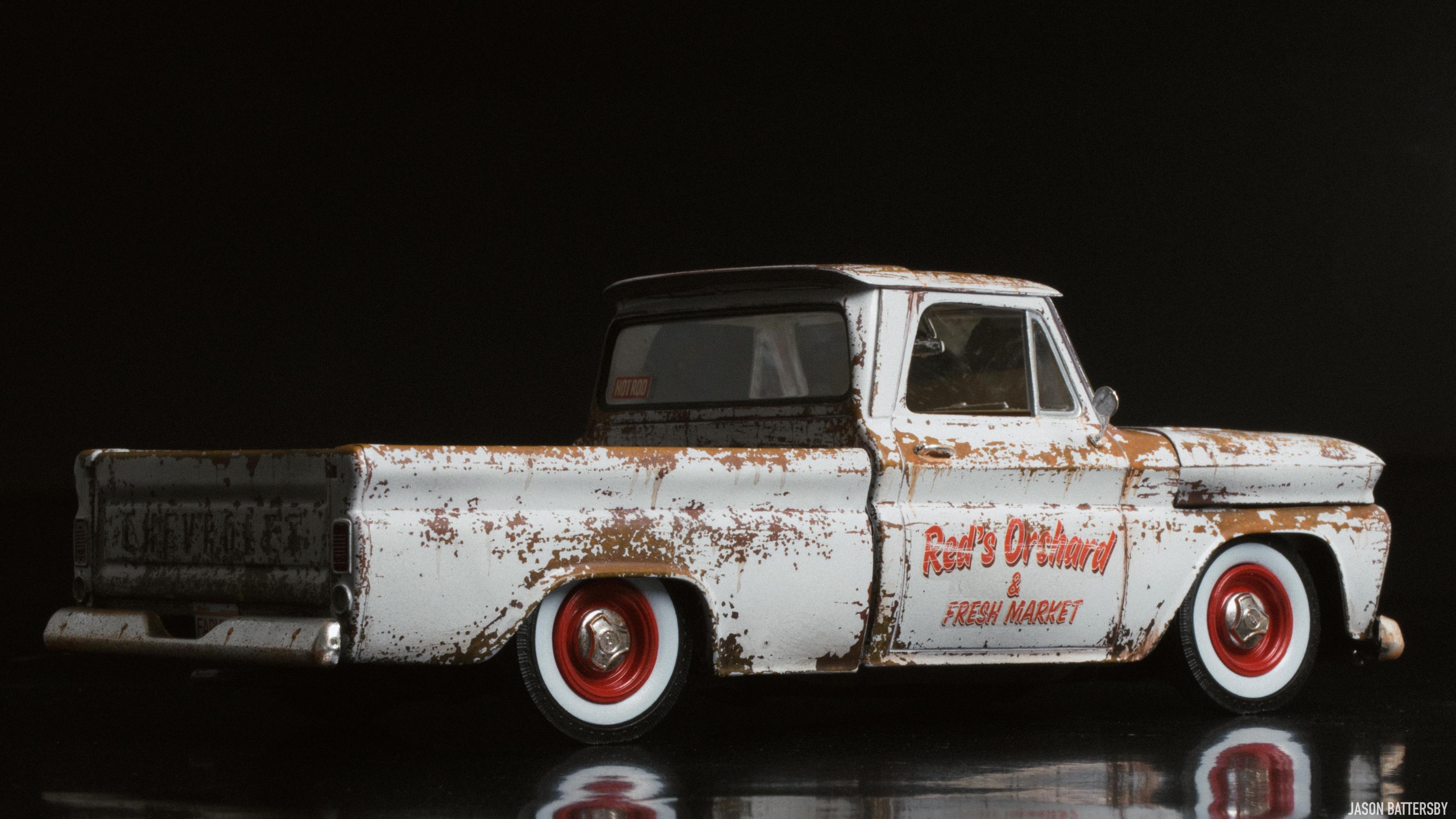 Hi guys, I'm happy to share my first completed build for 2021, Revell's 1966 Chevrolet Fleetside pickup. I received this model for Christmas this past December and knew straight away I would like to try a weathered rat rod look. My idea for this build was to make it look like a barn find turned shop truck, hence the patinaed body but cleaned up wheels and lowered stance. This was only my second time weathering a model, using Vallejo Rust acrylic paints to build up the rust shades. The body was then sprayed with Vallejo chipping medium plus some salt to get more variation in the chips. The body was then sprayed with Tamiya X-2 Gloss White acrylic, and when dry I used water, a toothbrush and my finger nails to chip and scratch off the paint. The rest is built box stock, I just focused on weathering and dirtying up as many areas of the interior and engine bay as possible. For the rusty chrome it was a mix of sponging on the Vallejo rust shades, and Tamiya semi-gloss clear to give the chrome that faded look. This is a great model kit, everything seems to fit together perfectly, I will definitely pick up another one and give it a different look. Enjoy!