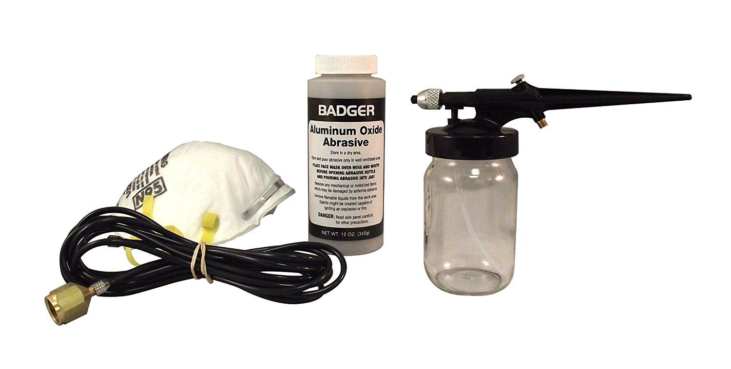 After looking at the MicroMark unit, I am thinking you can even diy the blasting bed using two plastic totes that nest inside each other - one deep, one shallow. On the shallow one cut a hole in the side for a shop vac hose, cut the bottom out and install a fine mesh screen, then seal the lid on with silicone caulk. Flip it over and set the bigger one over it with one long side and part of the bottom cut out to act as the containment for the abrasive particles. Connect the shop vac hose and blast away. -