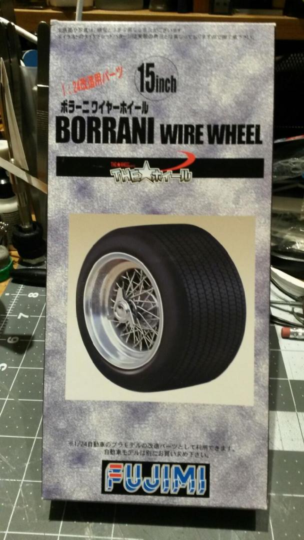 Actually they came from the Fujimi Borrani 15" wire wheel set. The box art is very deceiving as the tires you get are actually Michelin XWX and no where near as wide as it shows (the sidewall actually says 215/70-15)