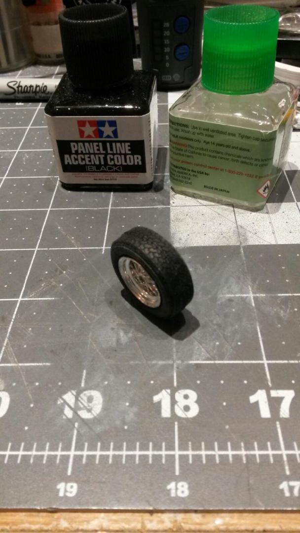 These are the Fujimi 15" Borrani wire wheels with their Michelin tire mounted. Not as good as the FPPM's for sure, but definitely better than the kit.