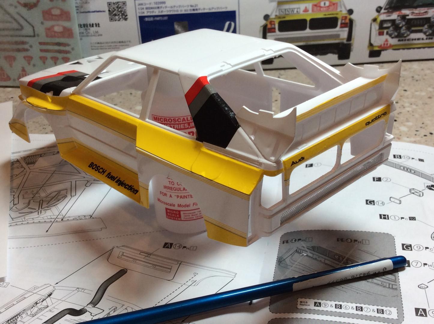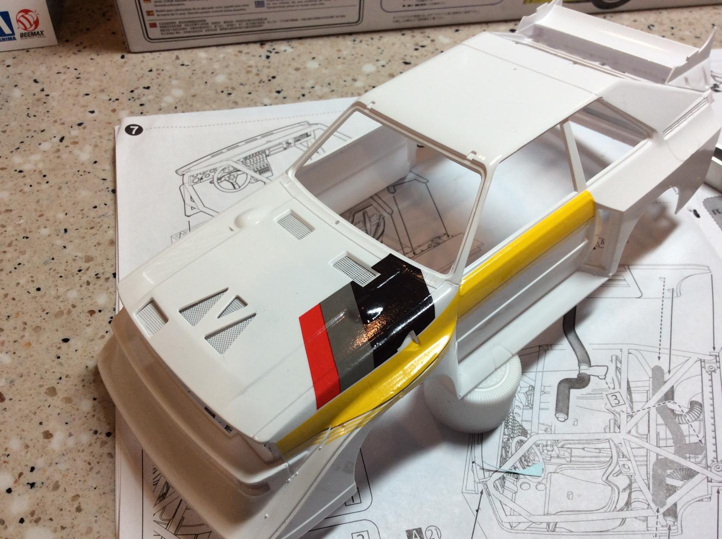 The kit I used was Tamiya 24262 Peugeot 206.. It has the dirt stage options in it. Silver car with red graphics. I plan on doing this as the night snow stage car. I love the way these cars look with all the lights. Thanks for the support. I hope to have it done soon. The kit has some very thin parts, the rear wing and area were the rear vents go.