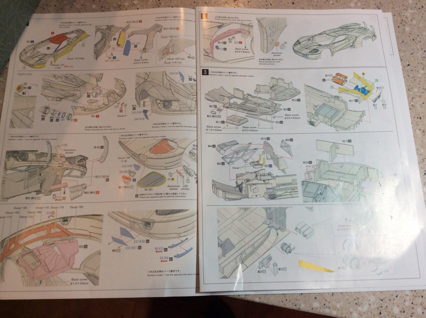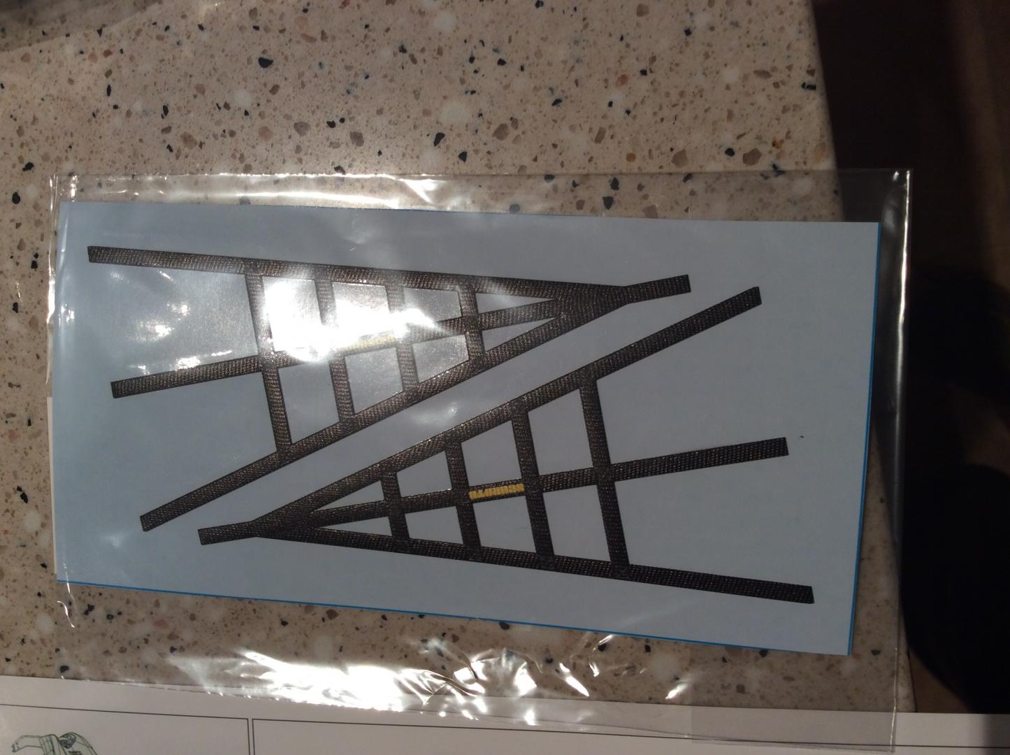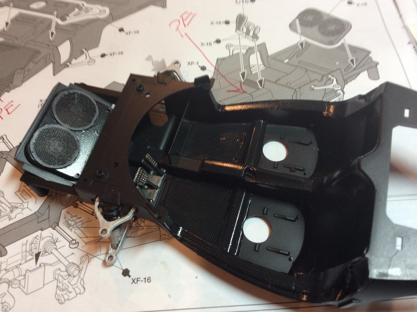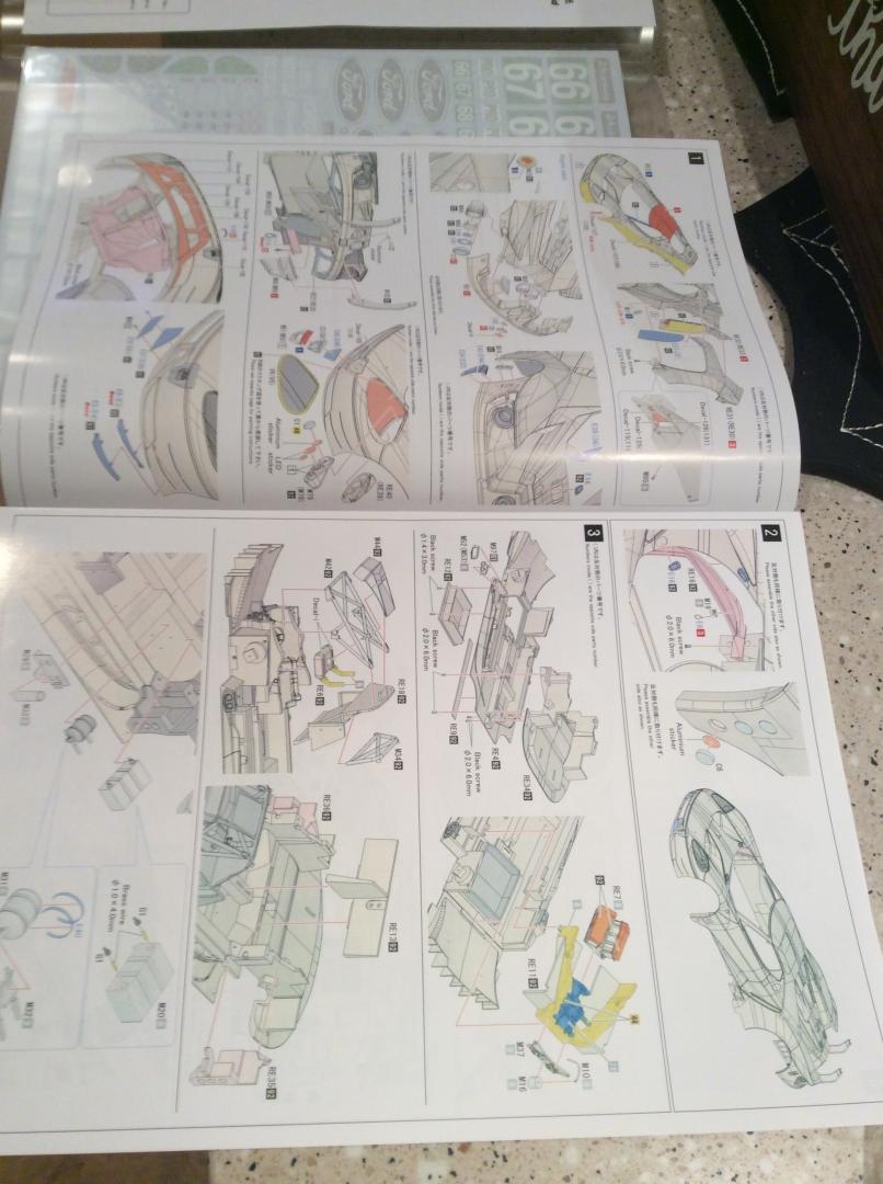 I just started working on the massive Ford GT GTE from MFH. This is my first 12th scale car that I've ever built. The kit is a curbside kit with some interior detail. My plan is too add some more detail to the interior with lines and cables. Carbon fiber from Scale Motorsports just arrived today. I'm using 20th scale carbon as the 12th looked to big in the pattern. The kit has been molded with the rear fenders off , too make painting easier. The back has just been mocked on for fit. Chassis is two parts that screw together with four small screws. Paint will be Gravity in the correct color match. The stripe line has been pre scribed too make taping a breeze