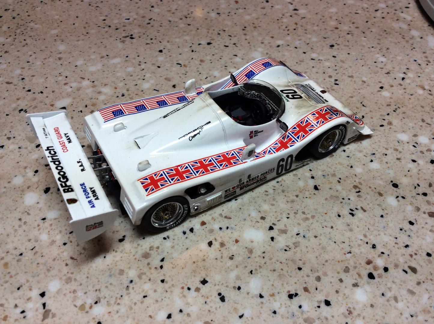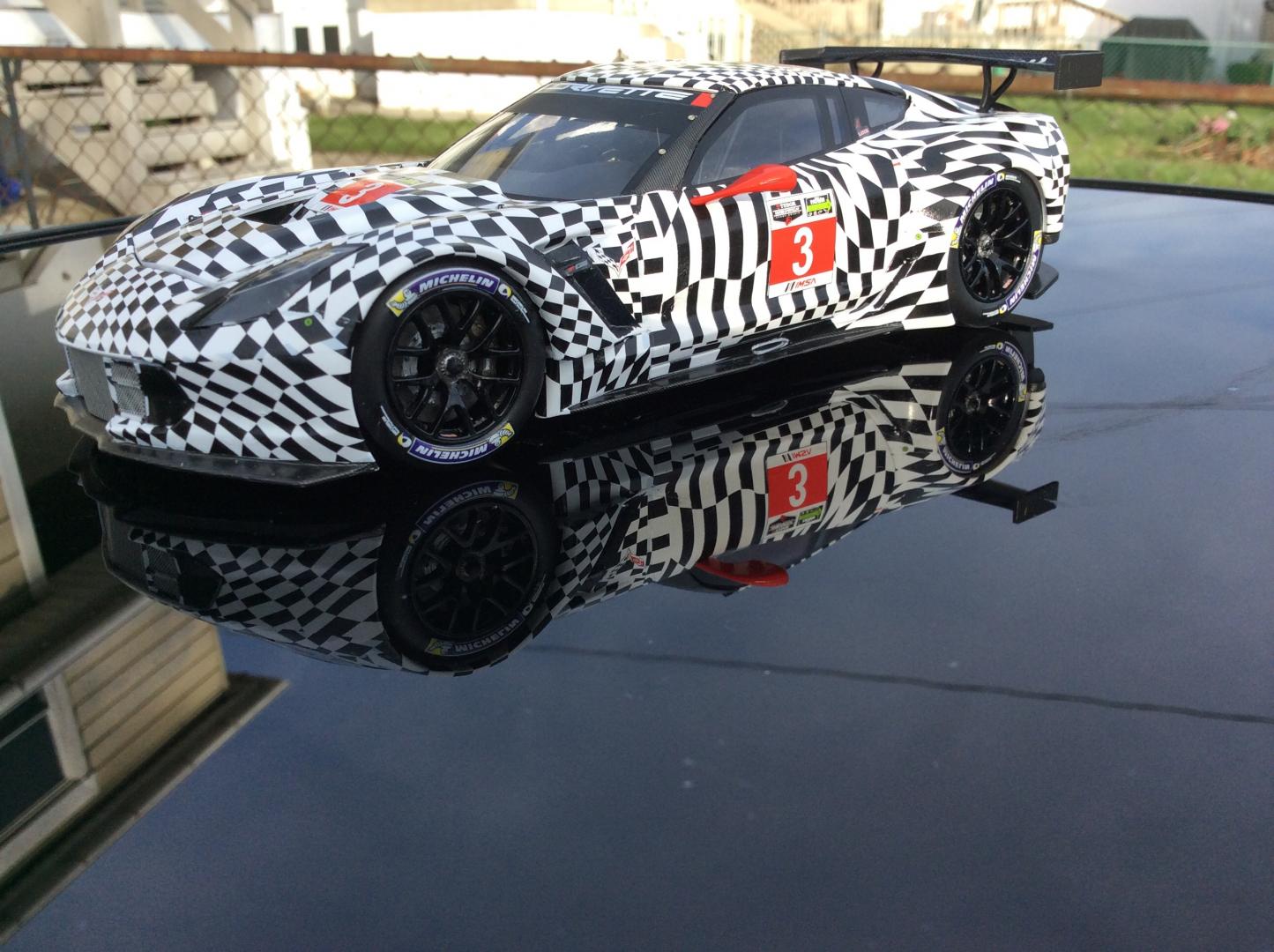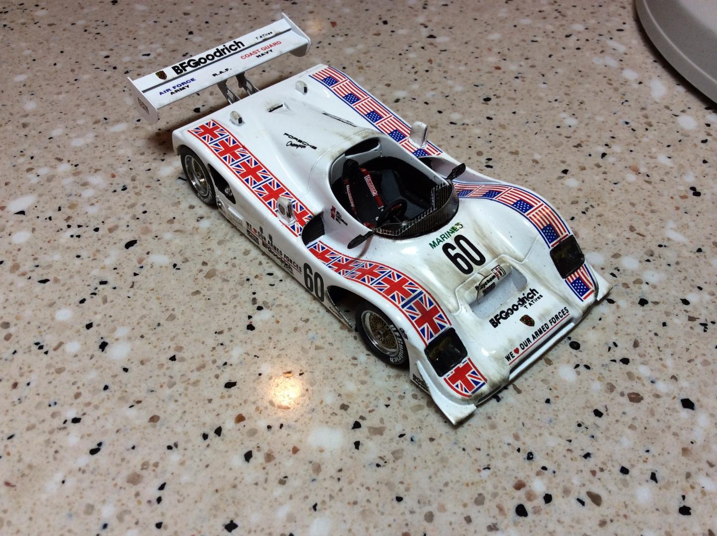 The kit is now finished see under glass . I had to buy two kits. The first kit the glass did not fit. Revell did replace this. The wheels are to thick in the spokes. I thinned them down with some needle files. I didn't use the axles in the kit or the brakes. The brakes on mine are from a lambo gt3 kit. The centers just had to be drilled out. I re-drill the mounting location to lower the car. Front and rear. I heard of a body fit issue in the dash area so I sanded down the front lip of the dash (the one where it lays under the windshield and above the firewall. The is part of the roll cage that passes under the dash. I cut the cross bar off and the bar sat lower to the chassis . The intake in the back sits to high as well. I trimmed of the mounting tabs to make it sit lower . This way the hood sits nice and flat. When mounting the body,I glued the back to the aero tray and just a little on top of the firewall. If you glue the nose down to the chassis the hood does not fit in the front at all. The kit is very toy like ,but can be built into something nice. Scale Motorsports now has a full detail set for the kit. By the way I cut off the wart on the roof as the test verison pics I found did not have them. Carrera slot car has a nice set of wheels in 1/24 from one of there cars. Being in the Uk I'm sure you can get them easy. Just cut off the gear. Would love to see Le Mans live some day. Hope this helped if more info is needed send me a pm. Here's a finished photo .